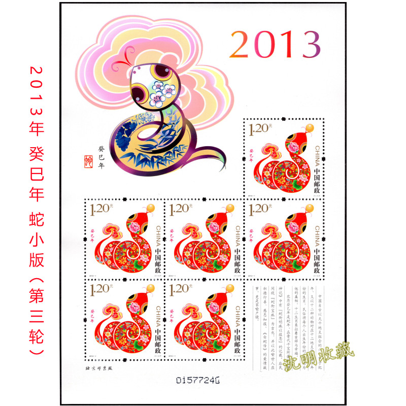 2013-1 Snake zodiac stamp third round of Xiao decanhong stamp small version of the original rubber fidelity