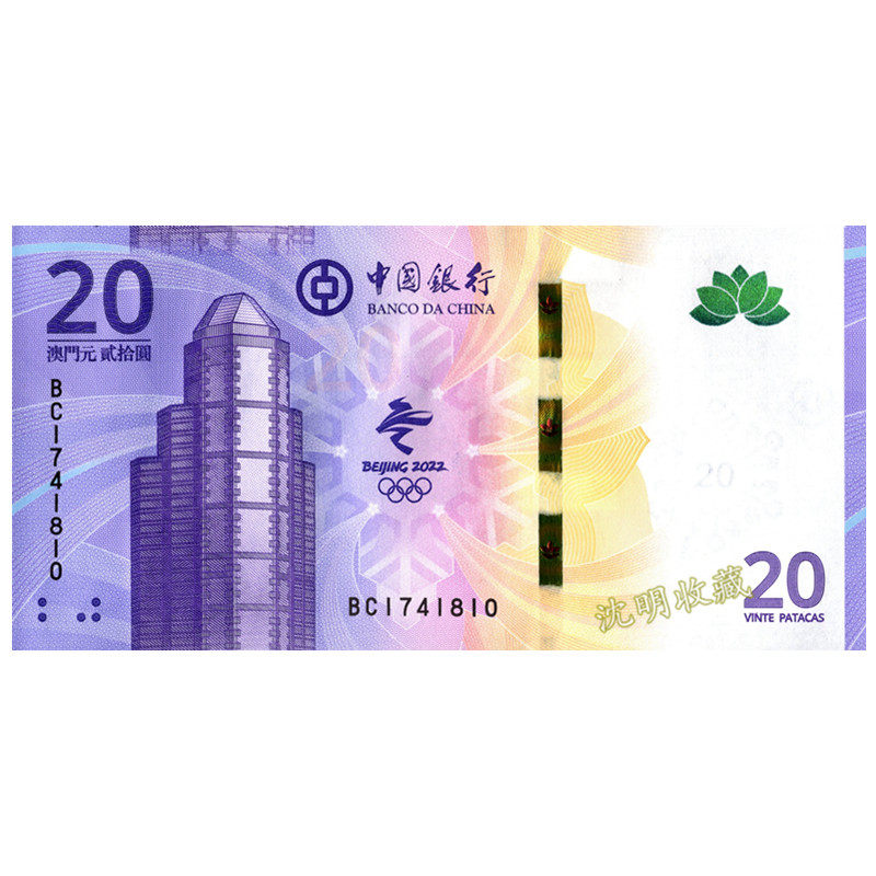 Asia New UNC Winter Olympic Games Memorial Note 20 RMB P-W128 (Number 4)