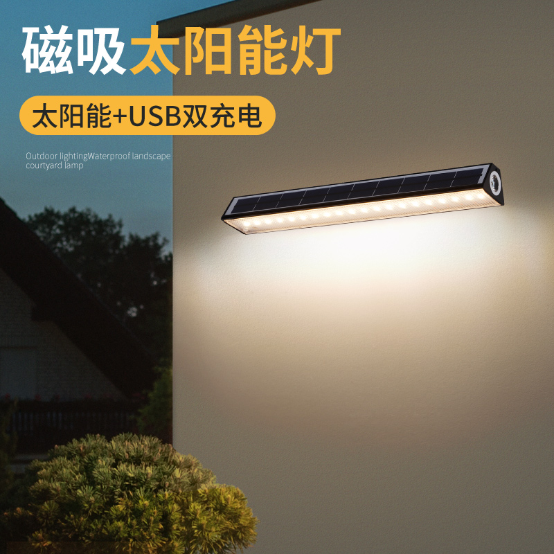 Solar outdoor lamp wall lamp household waterproof magnetic charging garden free punching free wiring villa garden lamp