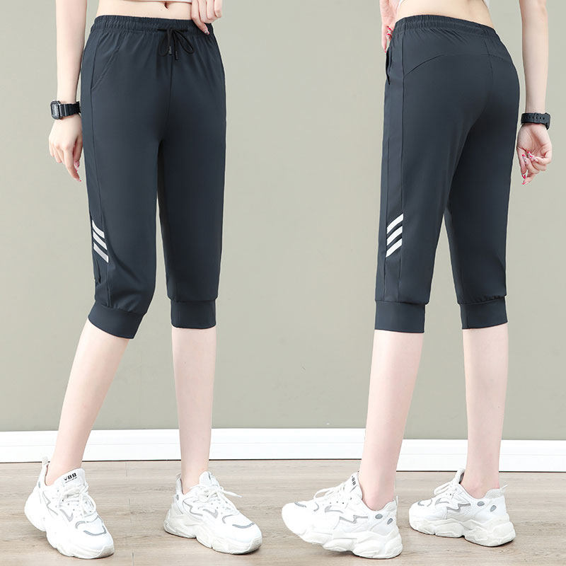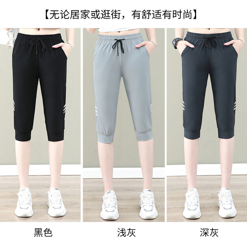 Large size ice silk elastic cropped pants ladies summer thin section mother middle-aged and elderly quick-drying loose 2022 new sports pants