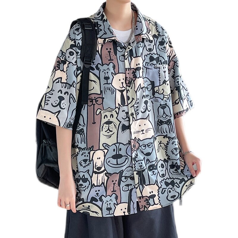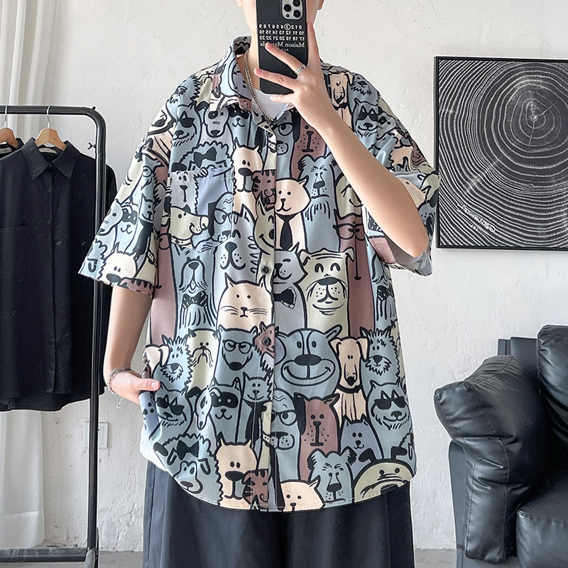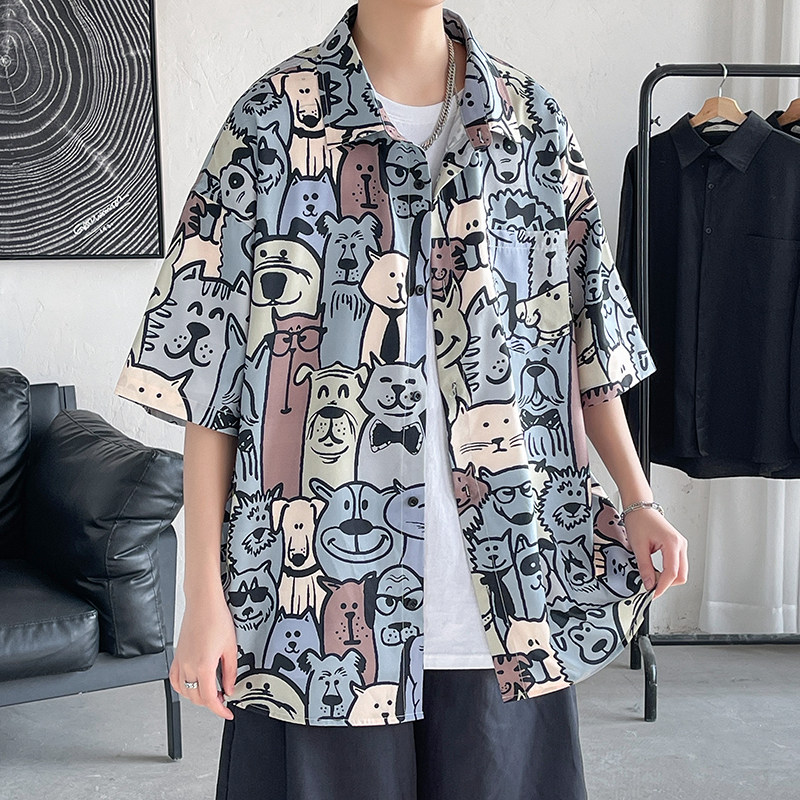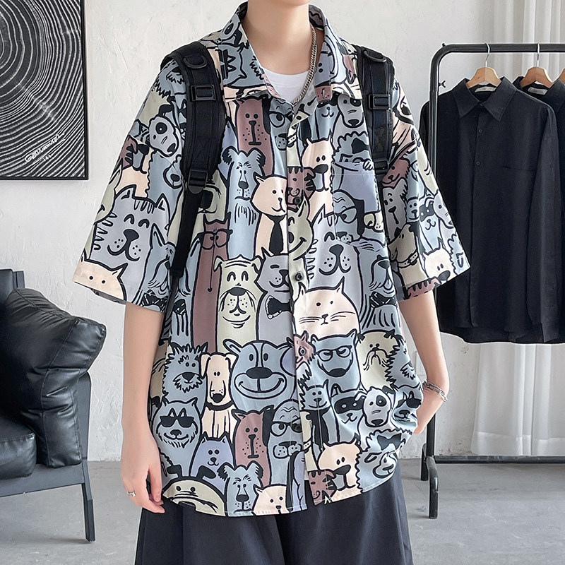 Summer seaside flower shirt men sky cartoon cartoon print large summer tide haven holiday ice wire half sleeve