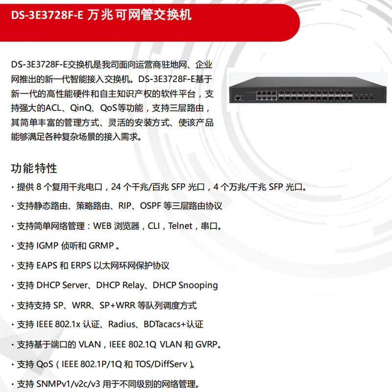 Hikvision DS-3E3752-E 52-port security core three-layer 10 Gigabit uplink switch