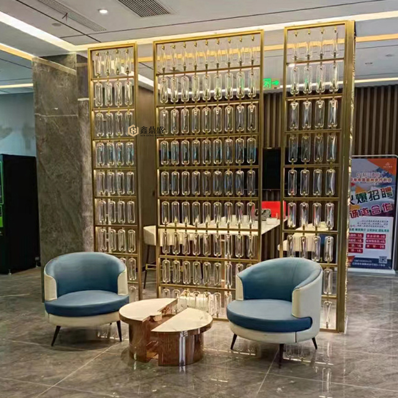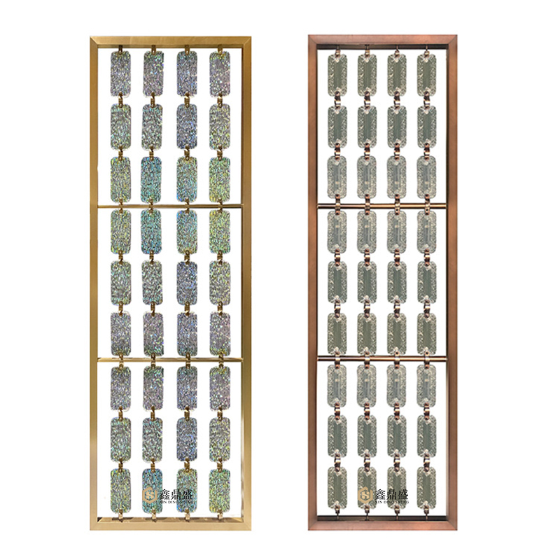 Stainless steel crystal hanging screen Changhong art glass grille metal partition living room hotel background wall