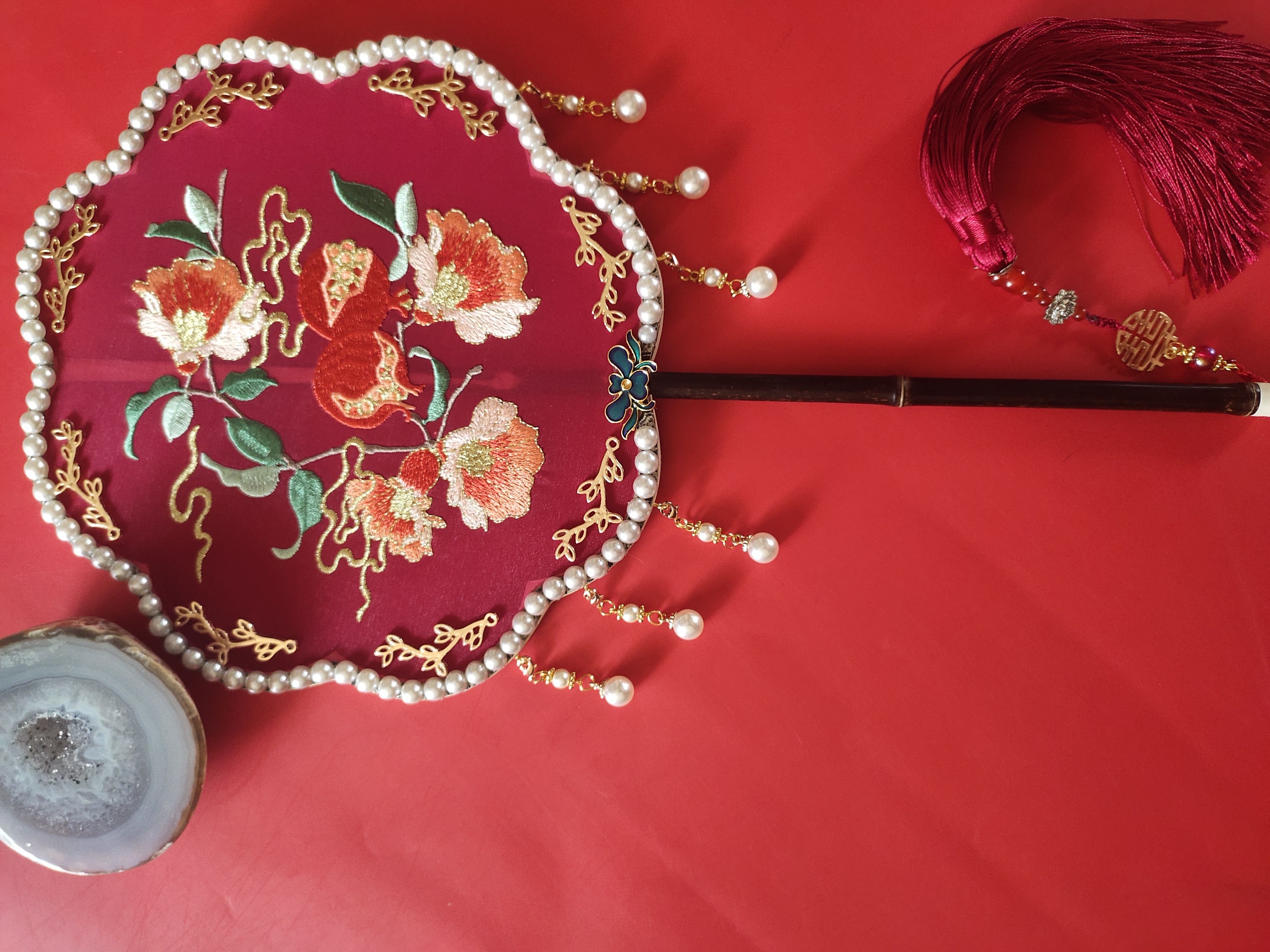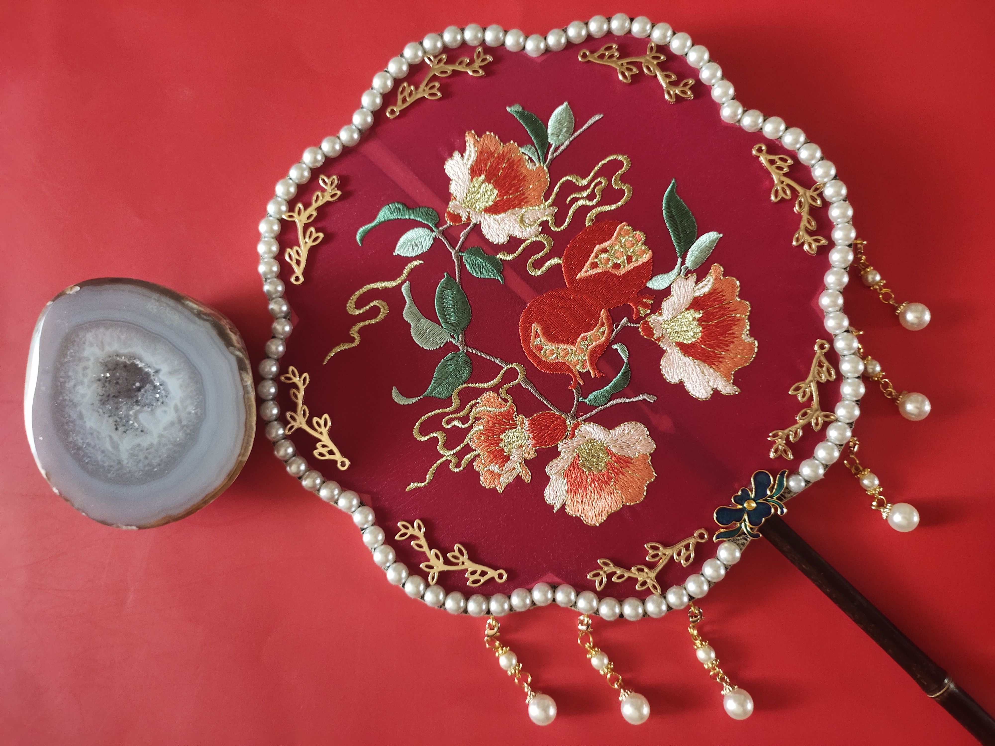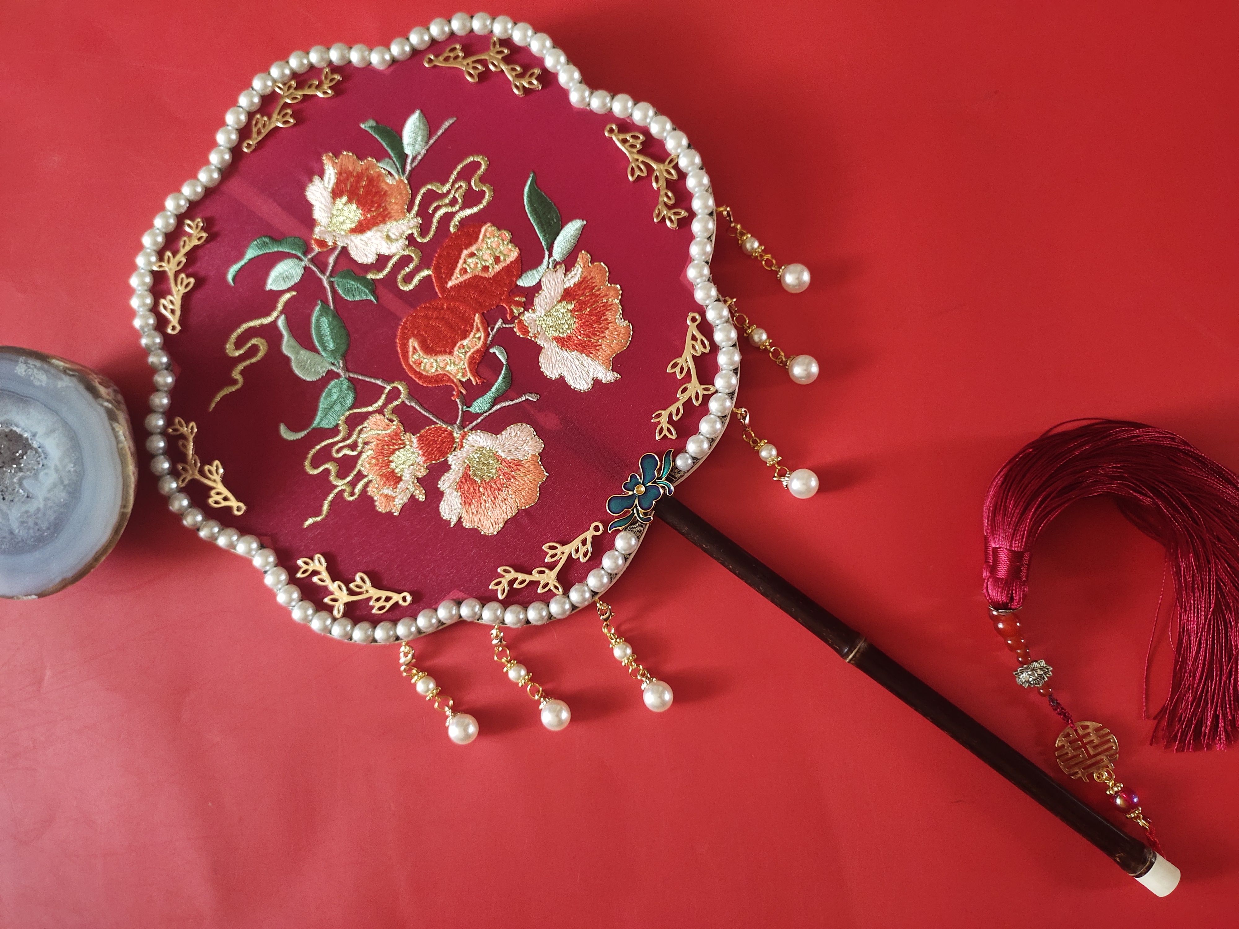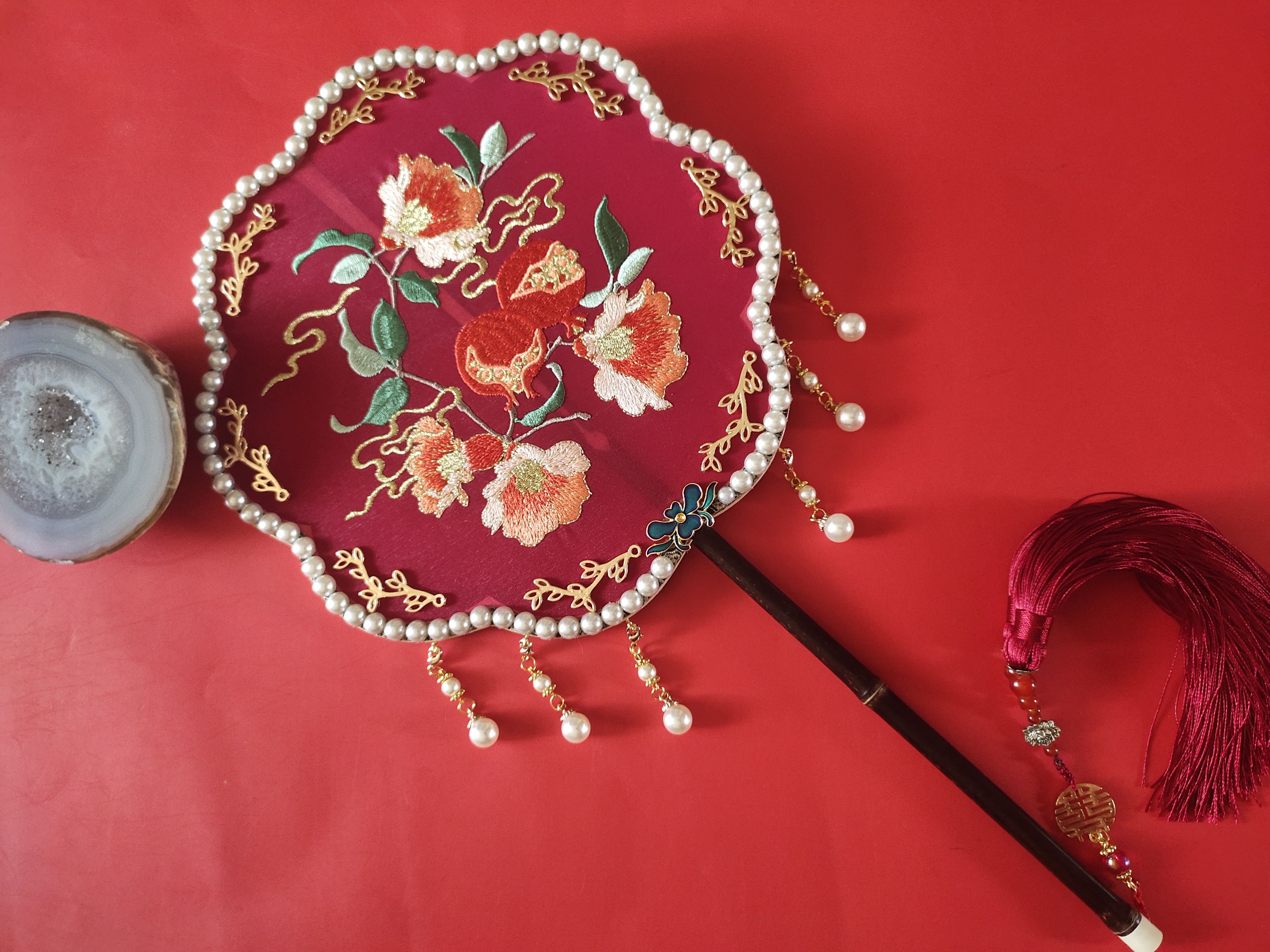 Love like the tide - Pomegranate flowers bloom wedding fan fan photography gifts ancient new version of marriage festivity customization