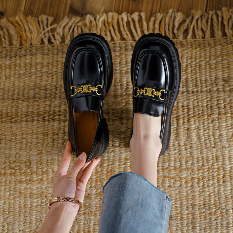 The leather pine and Lefu shoes lazy shoes in 2022 new British wind shoes