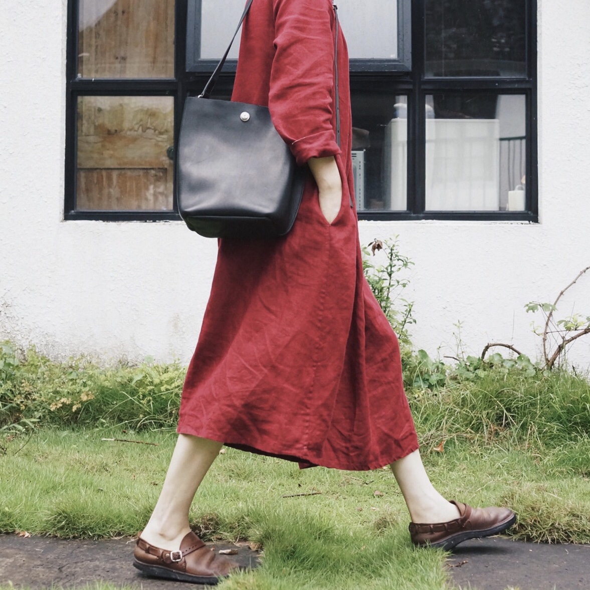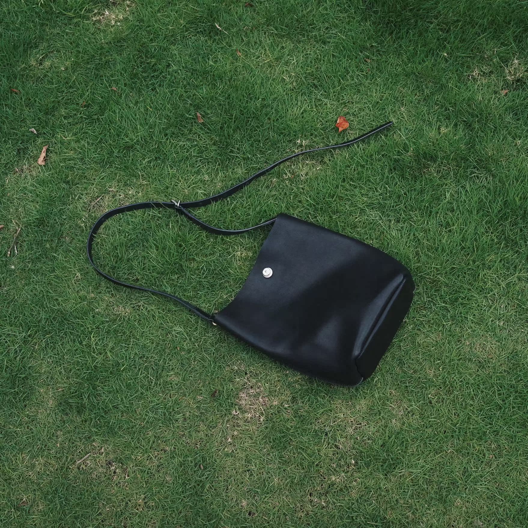 (Shi Zhou × Zhi Studio) Lbag black hand-stitched Horween leather bucket bag