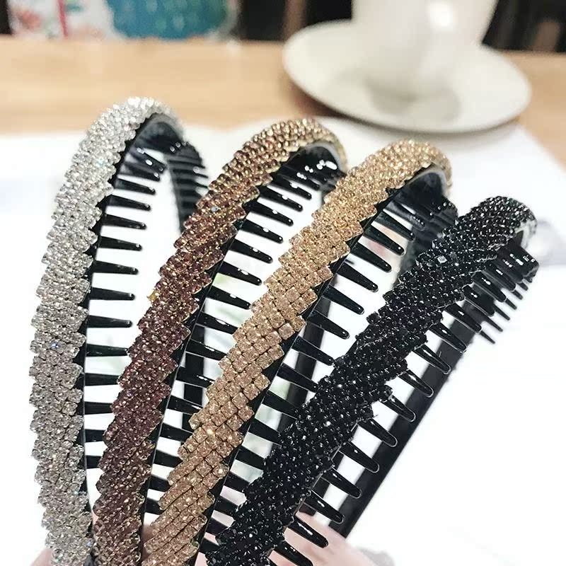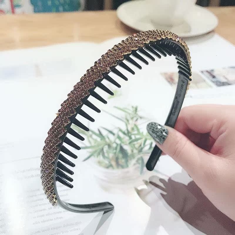 Middle-aged and elderly hairpin clip grandma plastic toothed non-slip insert comb bright drill female wash face pressure hair big back hair hoop
