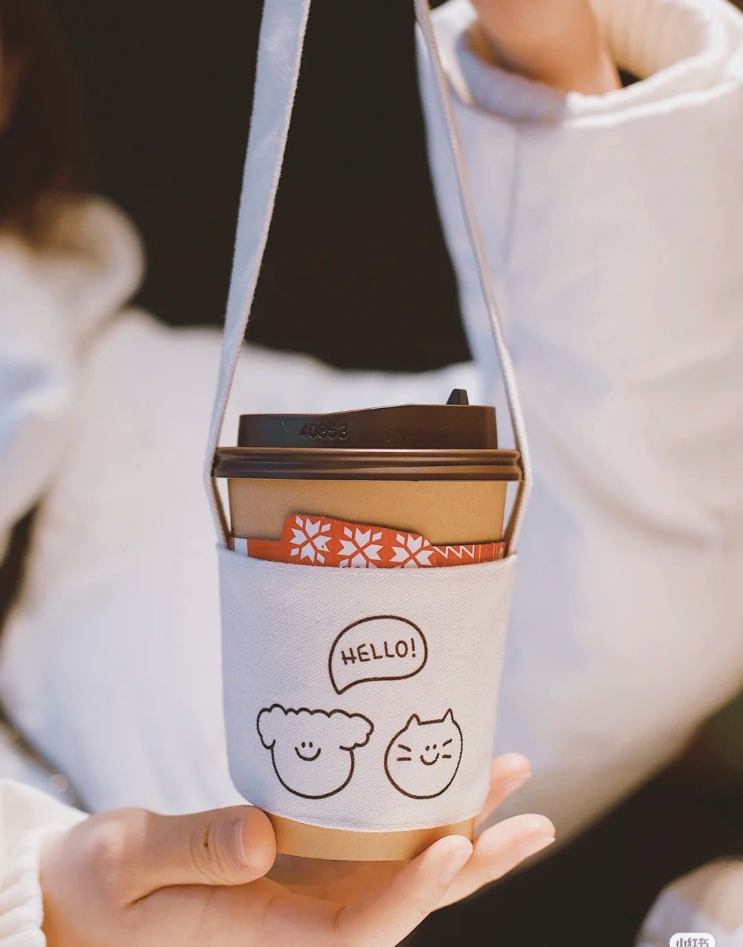 Internet celebrity accompanying cup bag environmental protection portable milk tea cup set Messenger coffee cup bag canvas bag ins milk tea cup portable