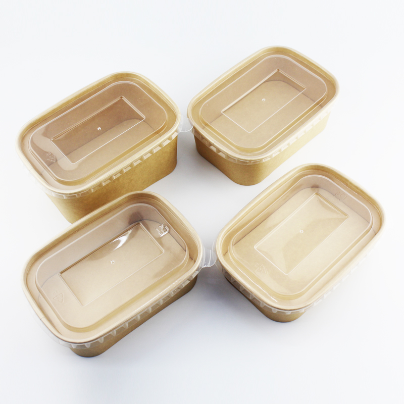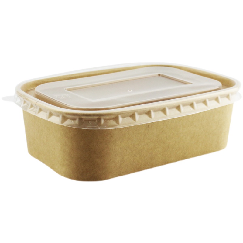 One-time thickened rectangular kraft paper packaging bowl 750ml delivery fast food Chinese style fruit fishing box with lid