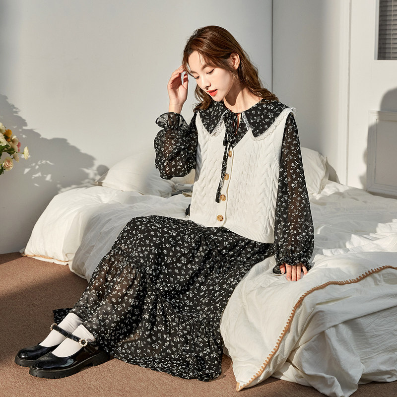 B small black dress suit A doll collar dress Two suit dress The first batch of A dolls collar dress Two sets Dress Two-piece Dress Second Batch of the first batch of rice white Crushed Flowers Skirt Suit