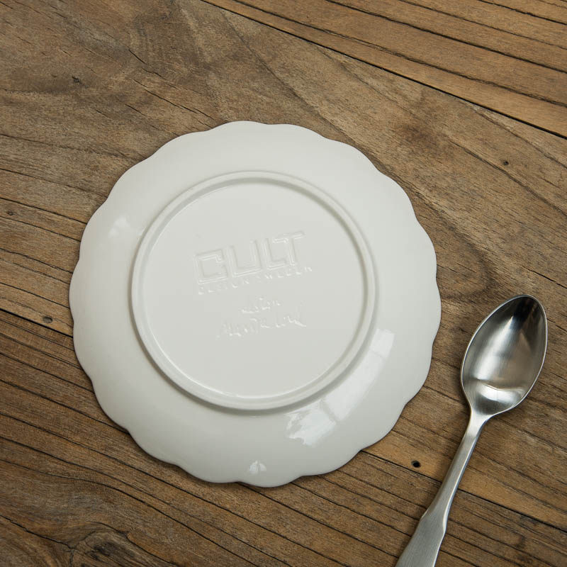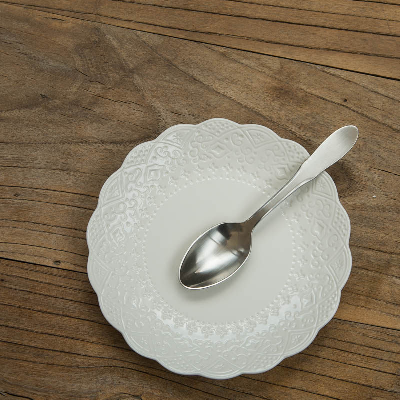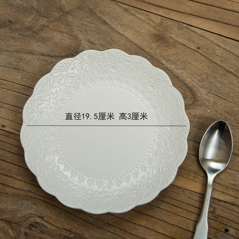 (E4) European-style baroque exquisite lace pattern flat dish plate with high temperature porcelain underglaze color