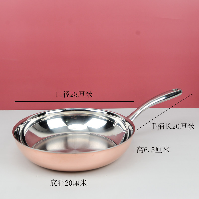 (K4) Foreign trade tail goods 28cm three-layer steel one-piece thickened copper-clad frying pan uncoated physical non-stick