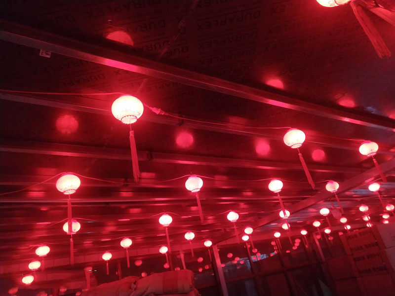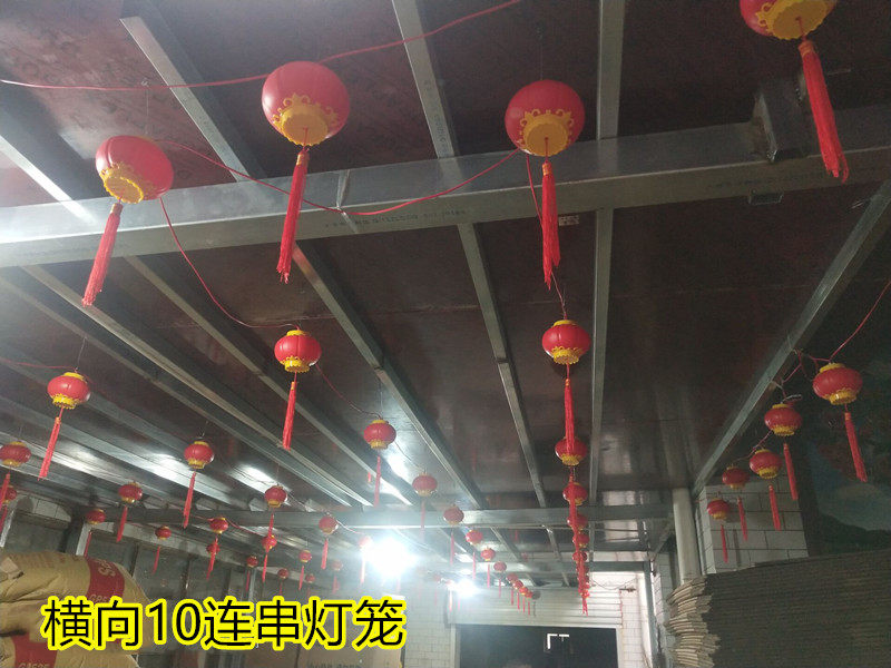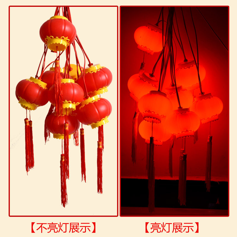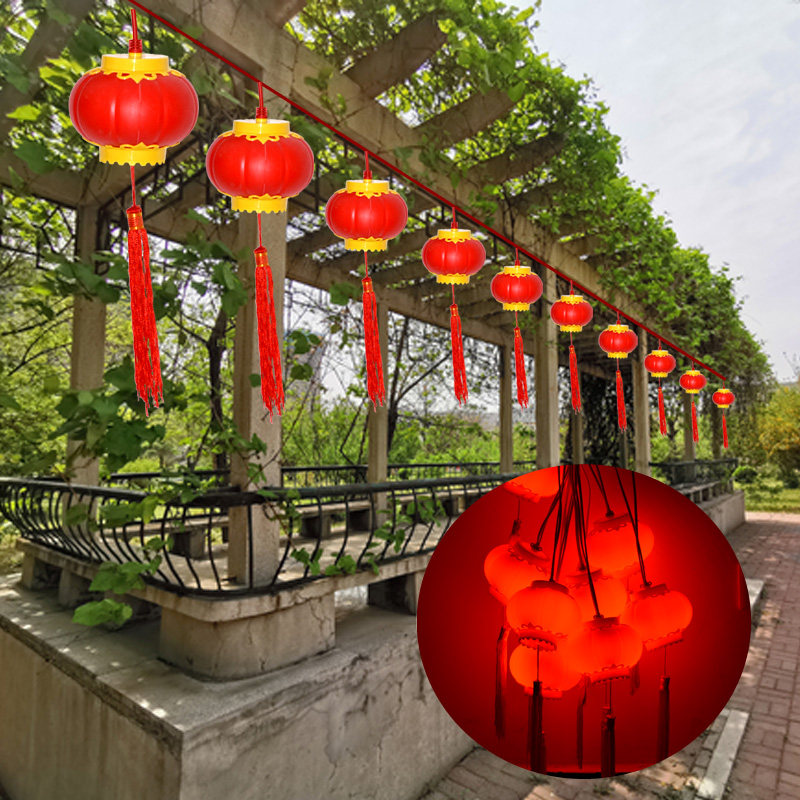 Outdoor waterproof and sun protection on the Spring Festival day, a series of decorative lighting red lanterns on a string of green plants and a string of lights