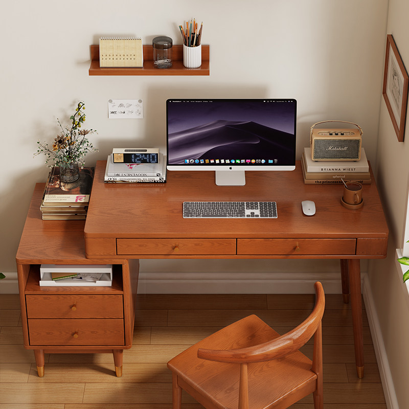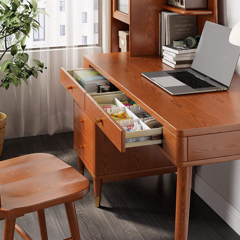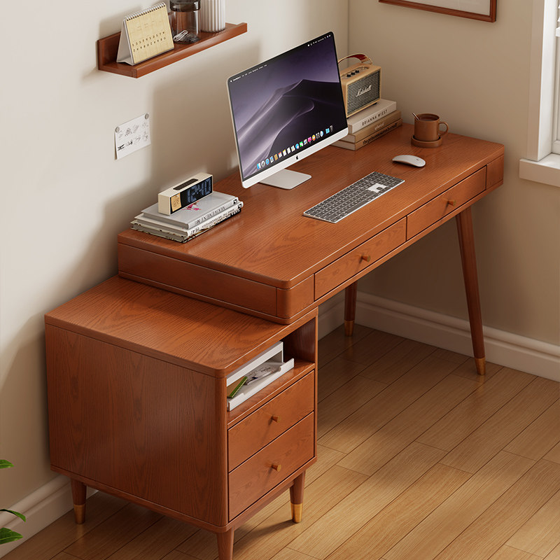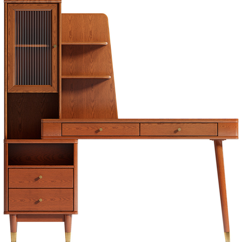 Desk side cabinet desk ten light desk-cherry color
