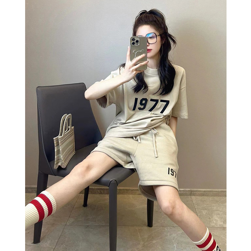 Cotton sportswear suit women's summer salt fried street loose short-sleeved shorts casual running fashion two-piece tide