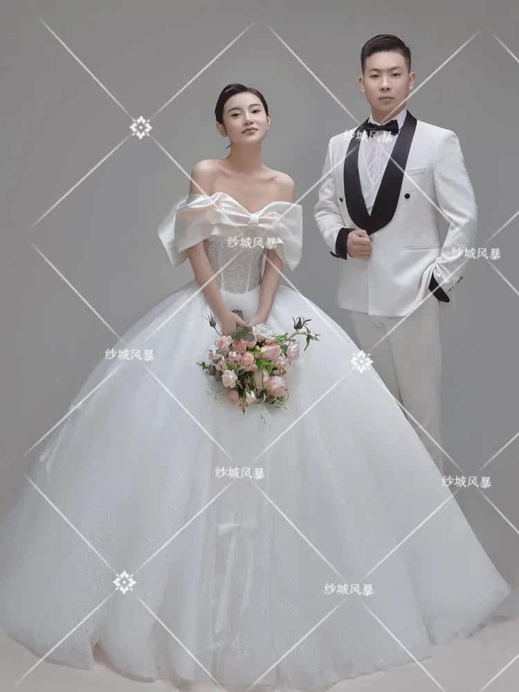 Studio indoor Korean theme clothing high-end lace wedding photography couple photo shoot white tutu skirt