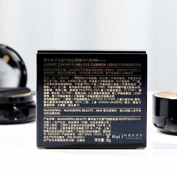 () Mao Geping Luxurious Caviar Cushion Liquid Foundation Concealer, Moisturizing, Lasting, Not Easy to Remove Makeup 8g