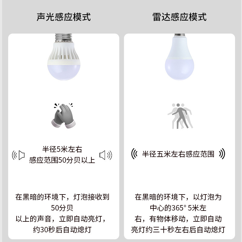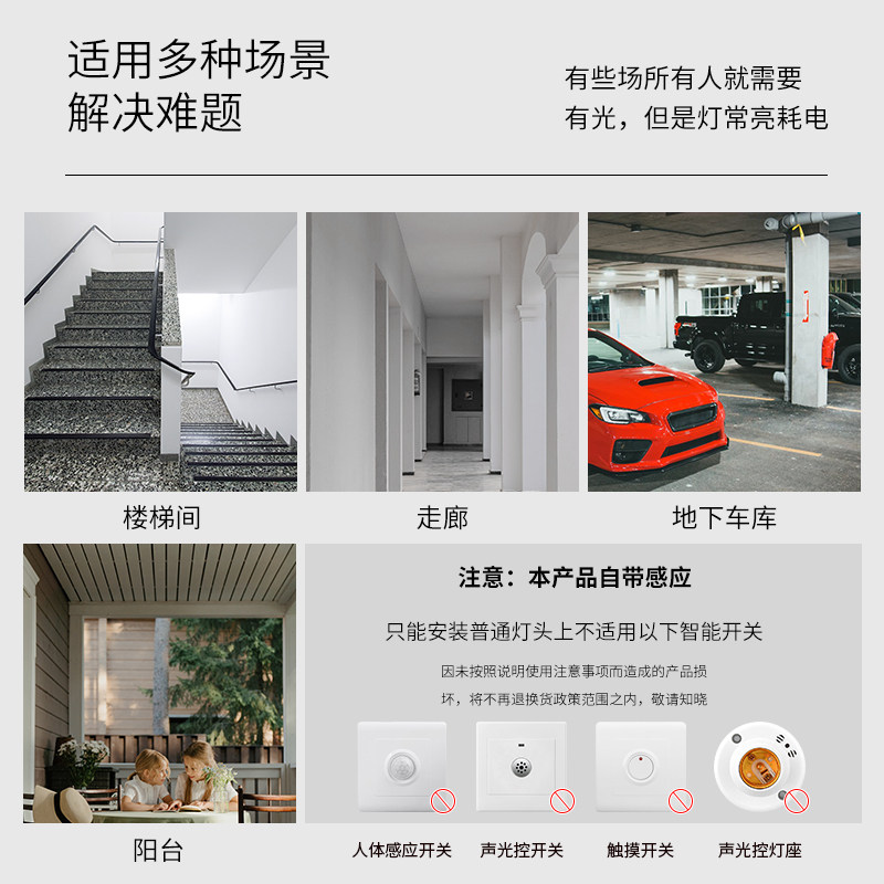 Sound-light control led bulb radar induction led bulb stairway corridor corridor underground garage area property