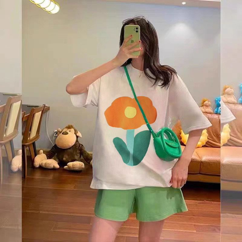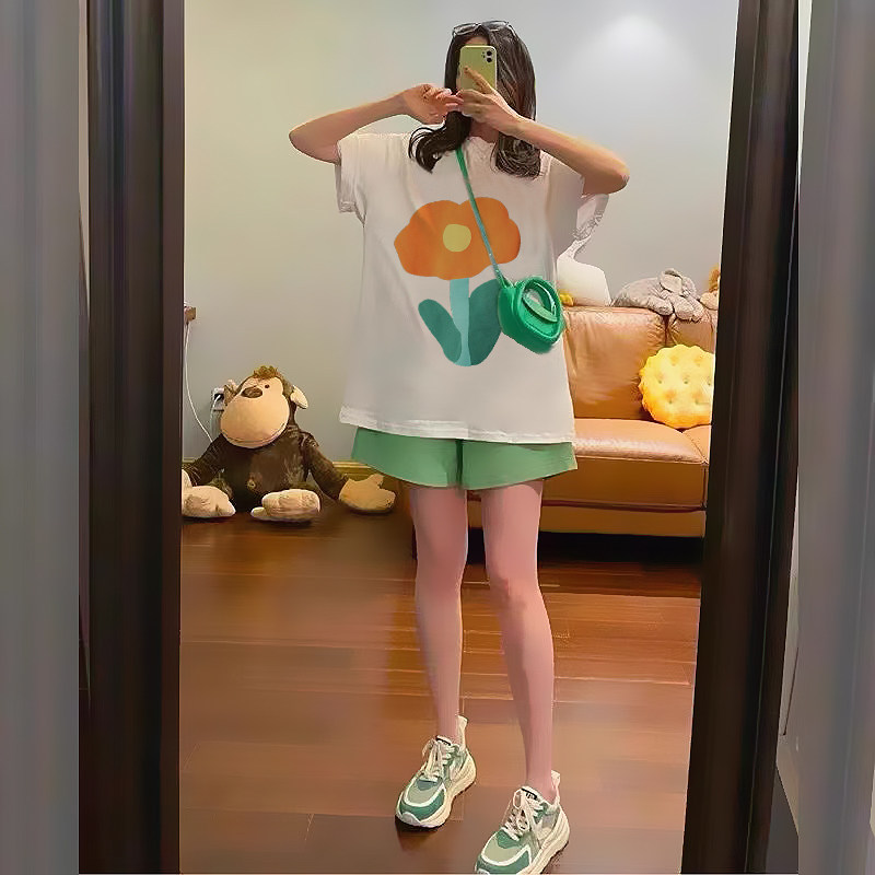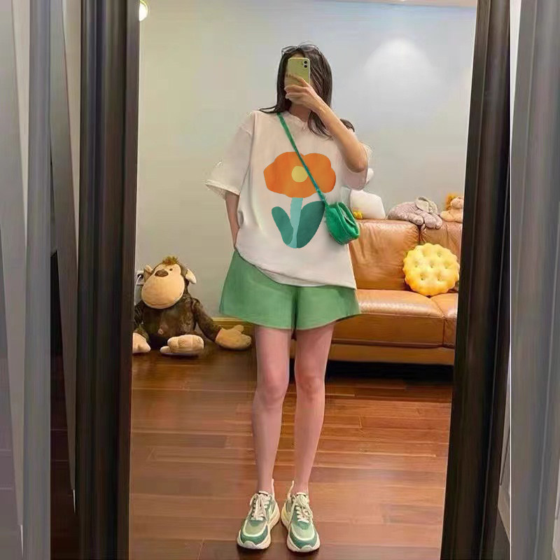 Salt series small casual sports suit female summer fried street age reduction cartoon short-sleeved shorts loose two-piece tide