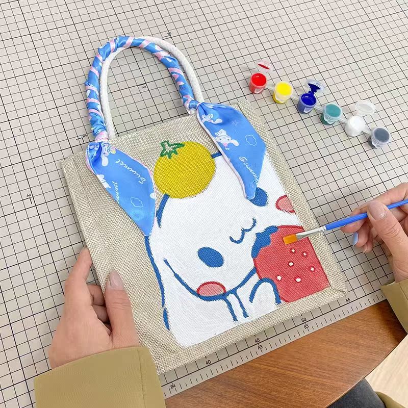 Yugui dog canvas painting diy material bag linen bag bag Sanrio ins coloring environmental protection bag fashion women
