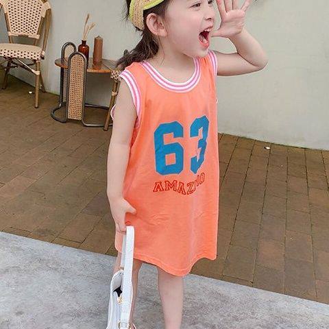 Girls' sports basketball clothes Korean version Fashion baby Summer clothes Children's baby foreign air vest with long dress little girl-Taobao
