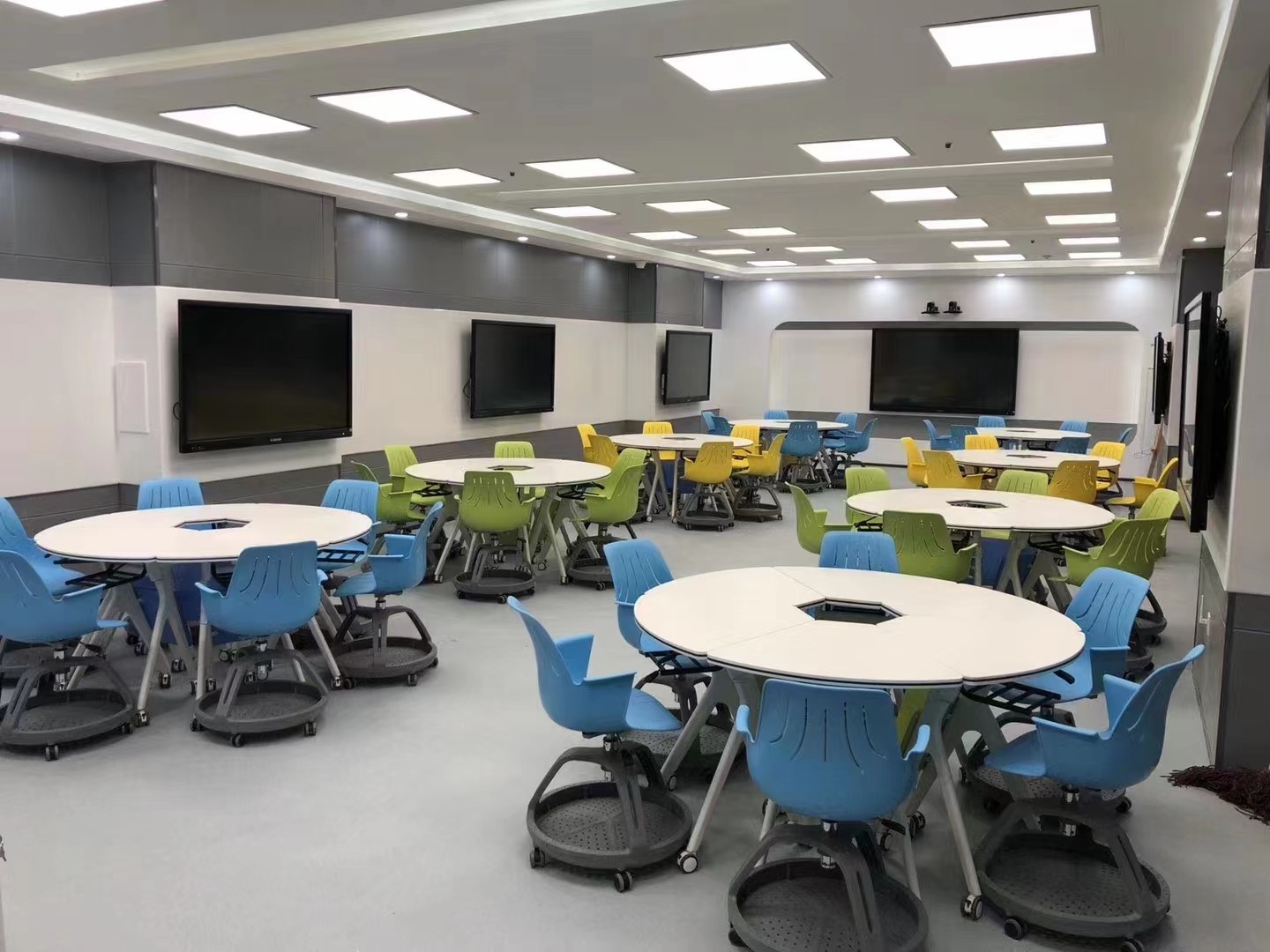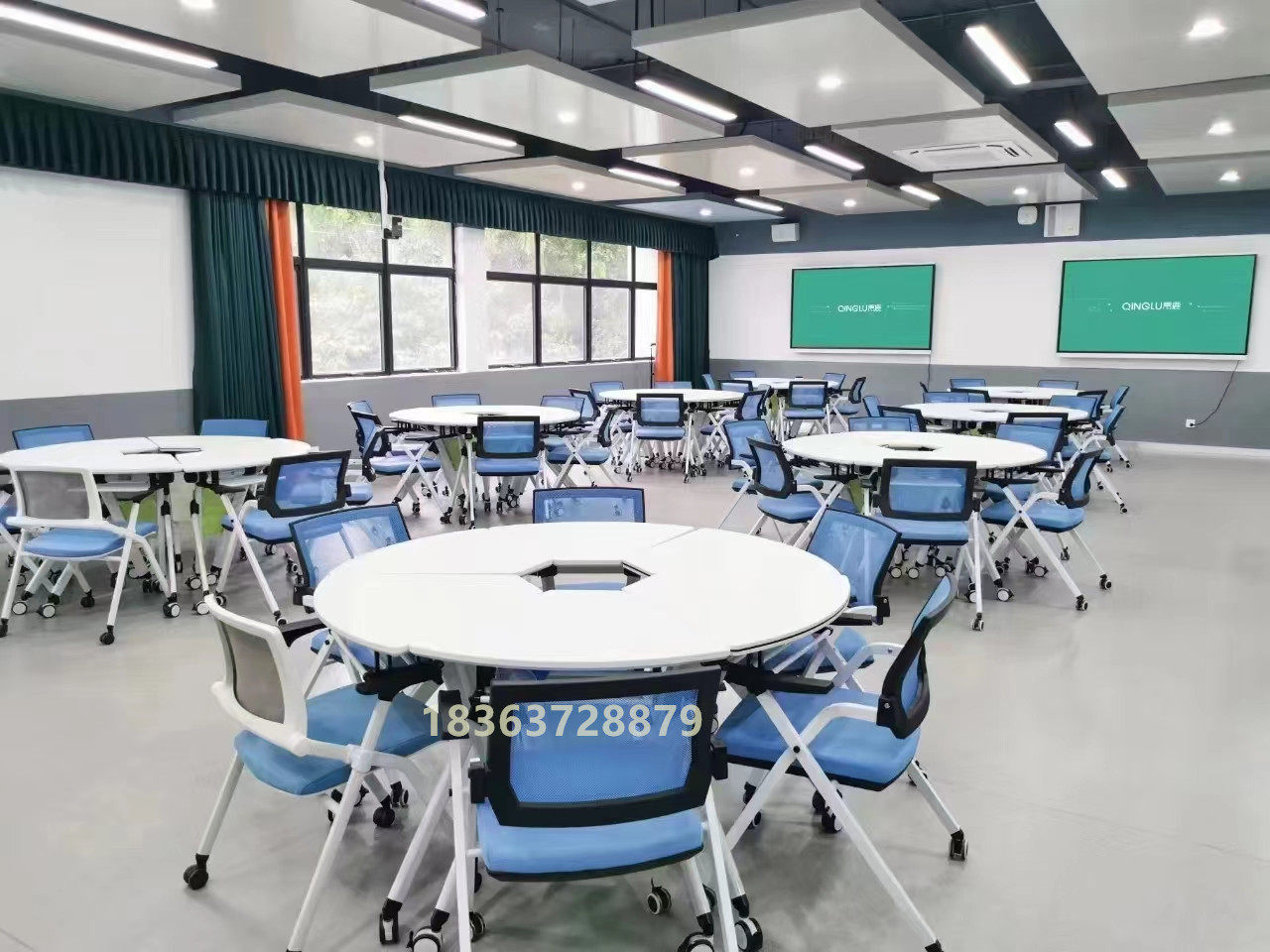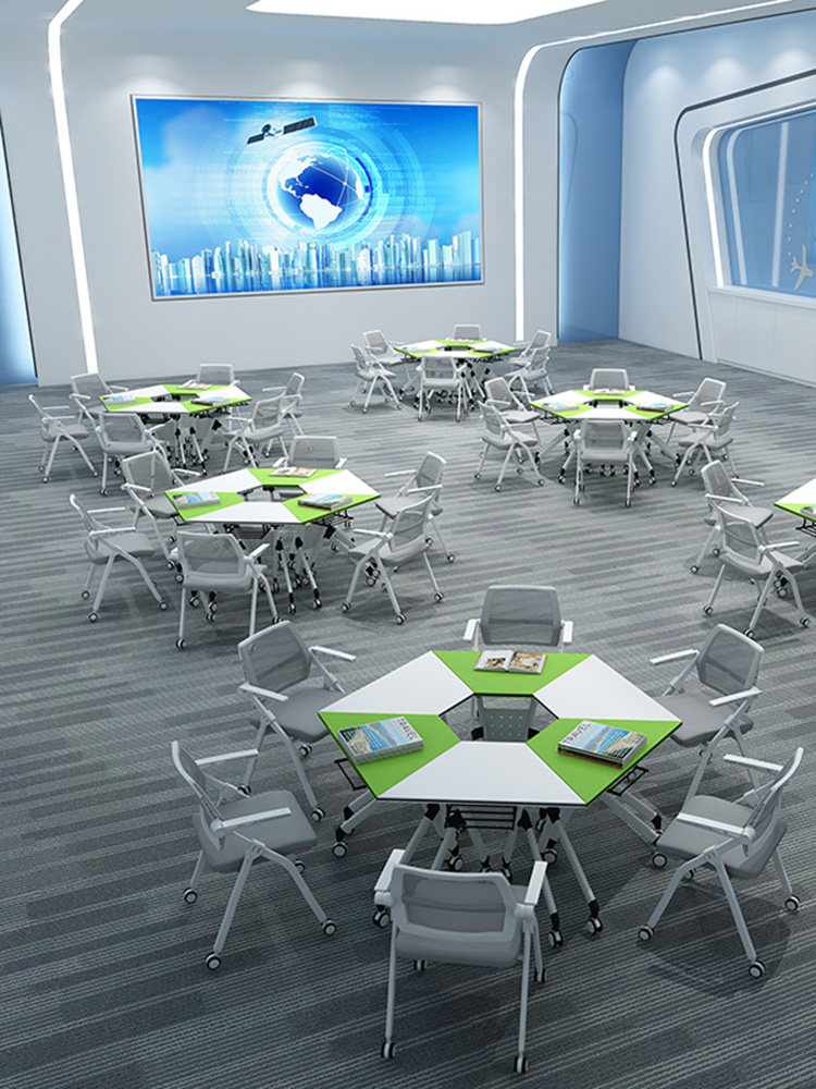 Folding meeting table with wheel mobile group table training chair splicing strips for smart classroom recording and broadcasting hexagon-Taobao