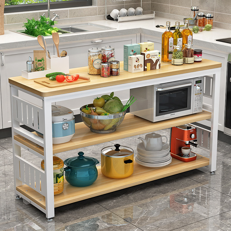 Kitchen shelving ground floor multilayer Multi-functional chopping table microwave containing rack storage rack rectangular table-Taobao