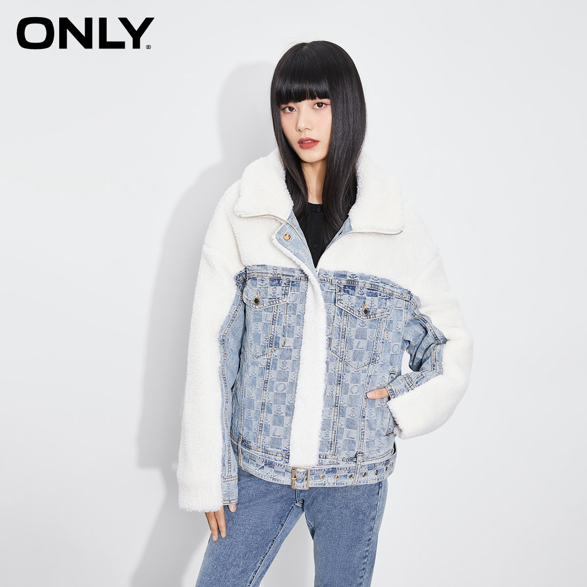 ONLY Autumn Fashion Loose Imitation Teddy Hair Stitching Denim Jacket Women