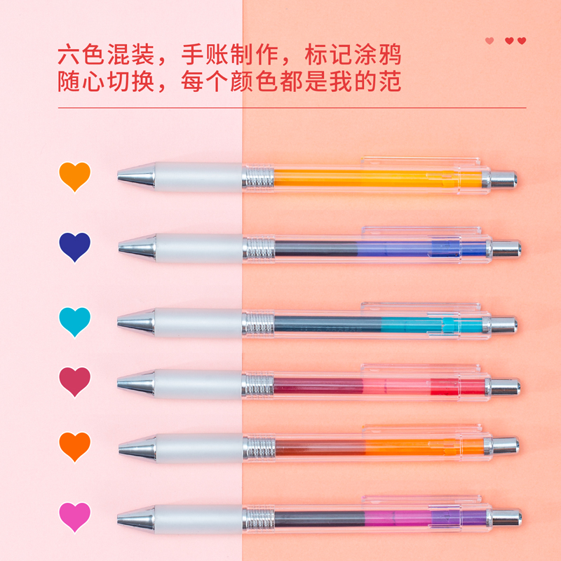 Strong elementary and secondary students press speed dry hand account color mark pen 6 color neutral pen smooth mark drawing