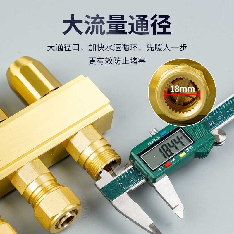 Floor heating water divider household large flow geothermal valve full set of all-copper complete floor heating water collector pure copper temperature control