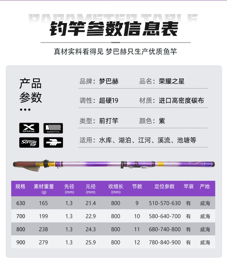 Mengbach spring new glory star front fishing rod ultra-light and super hard 19 adjustment grain wheat tease fishing rod three-position fishing rod