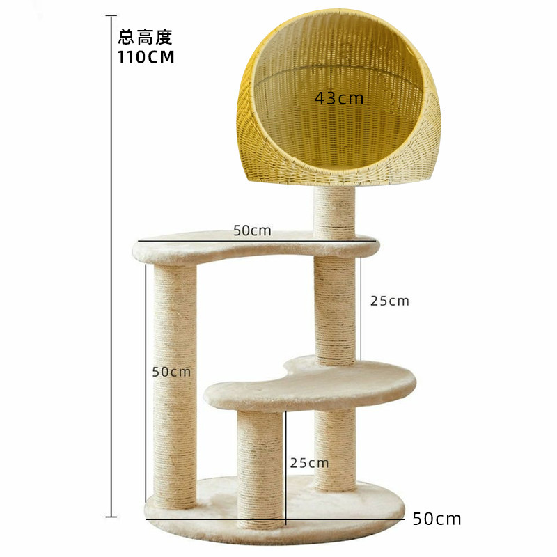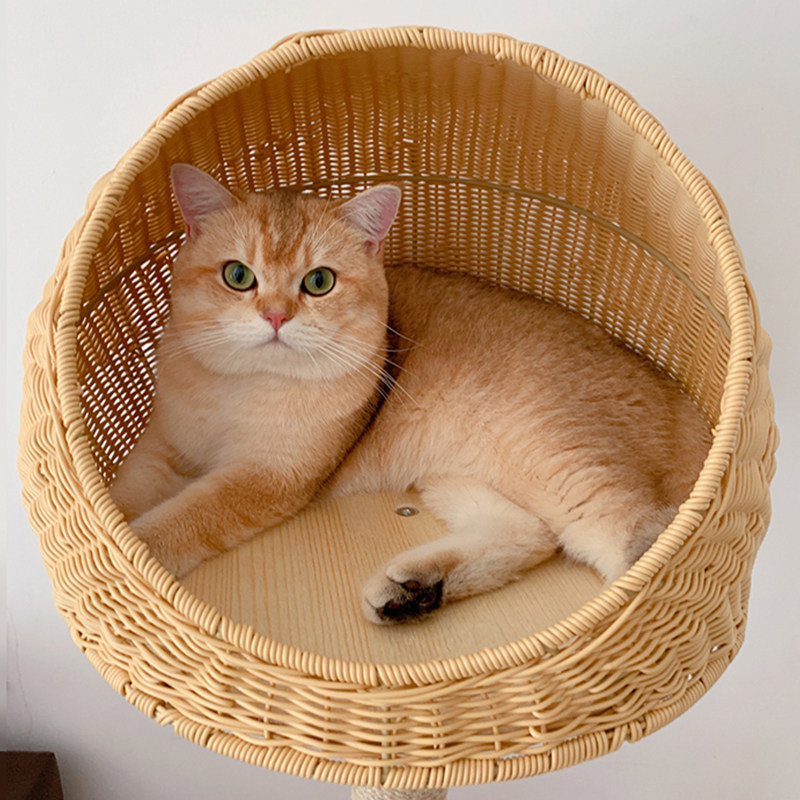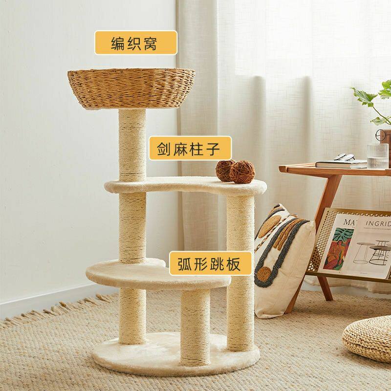 Japanese-style rattan cat climbing frame sisal cat litter cat tree cat paw column one three-layer four-season rattan seat cat toy net red