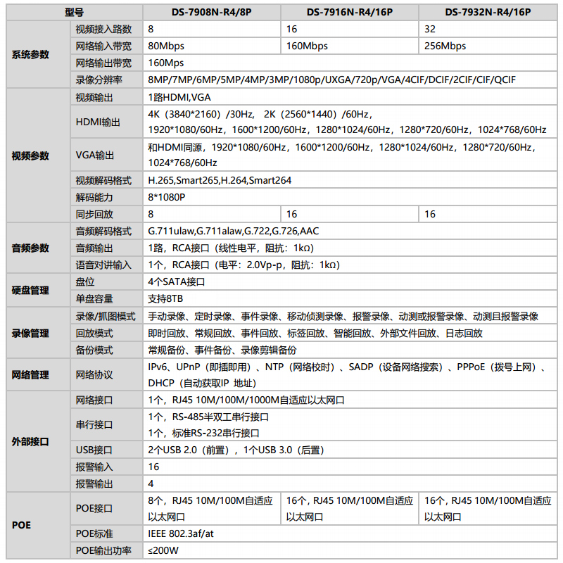 DS-7908N-R4 8PDS-7916N-R4 16PDS-7932N-R4 16P