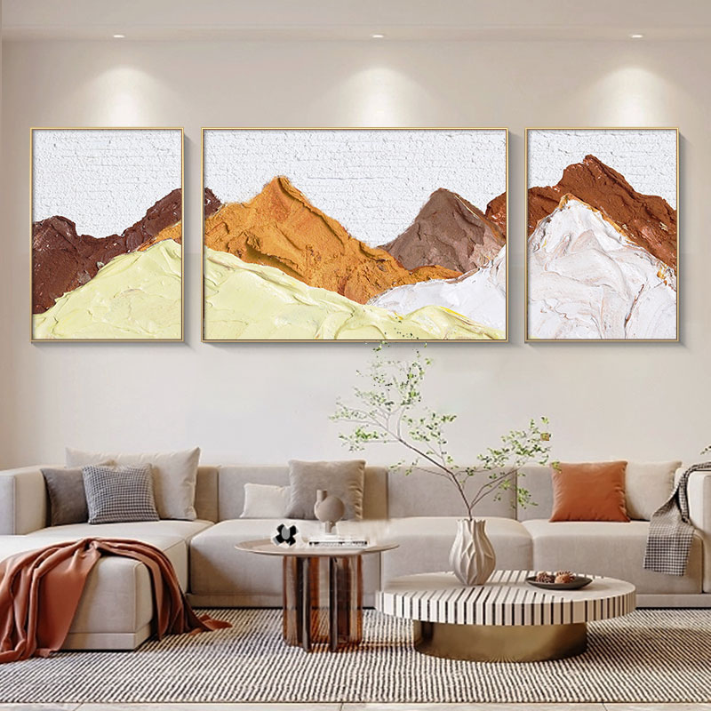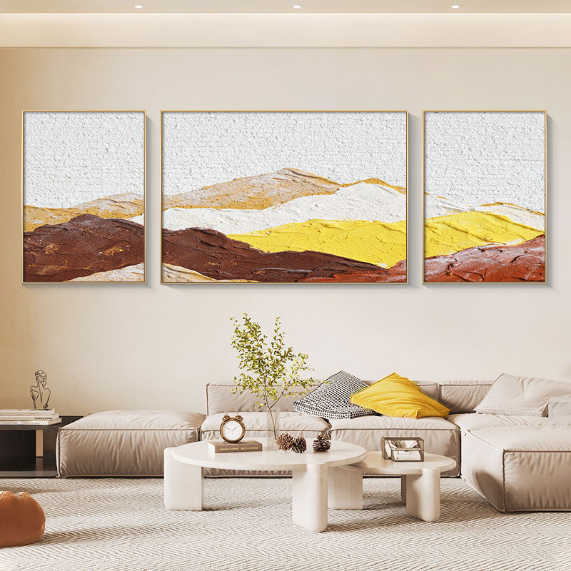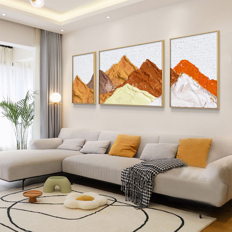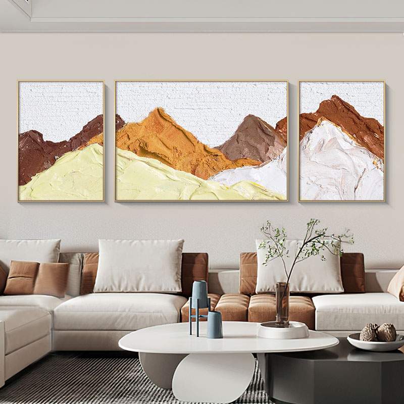 Back with leaning on the mountain Lonely Wind Sofa Background Wall Decoration Painting Cream Creamy Texture triptych Fancy Living Room Hanging Painting