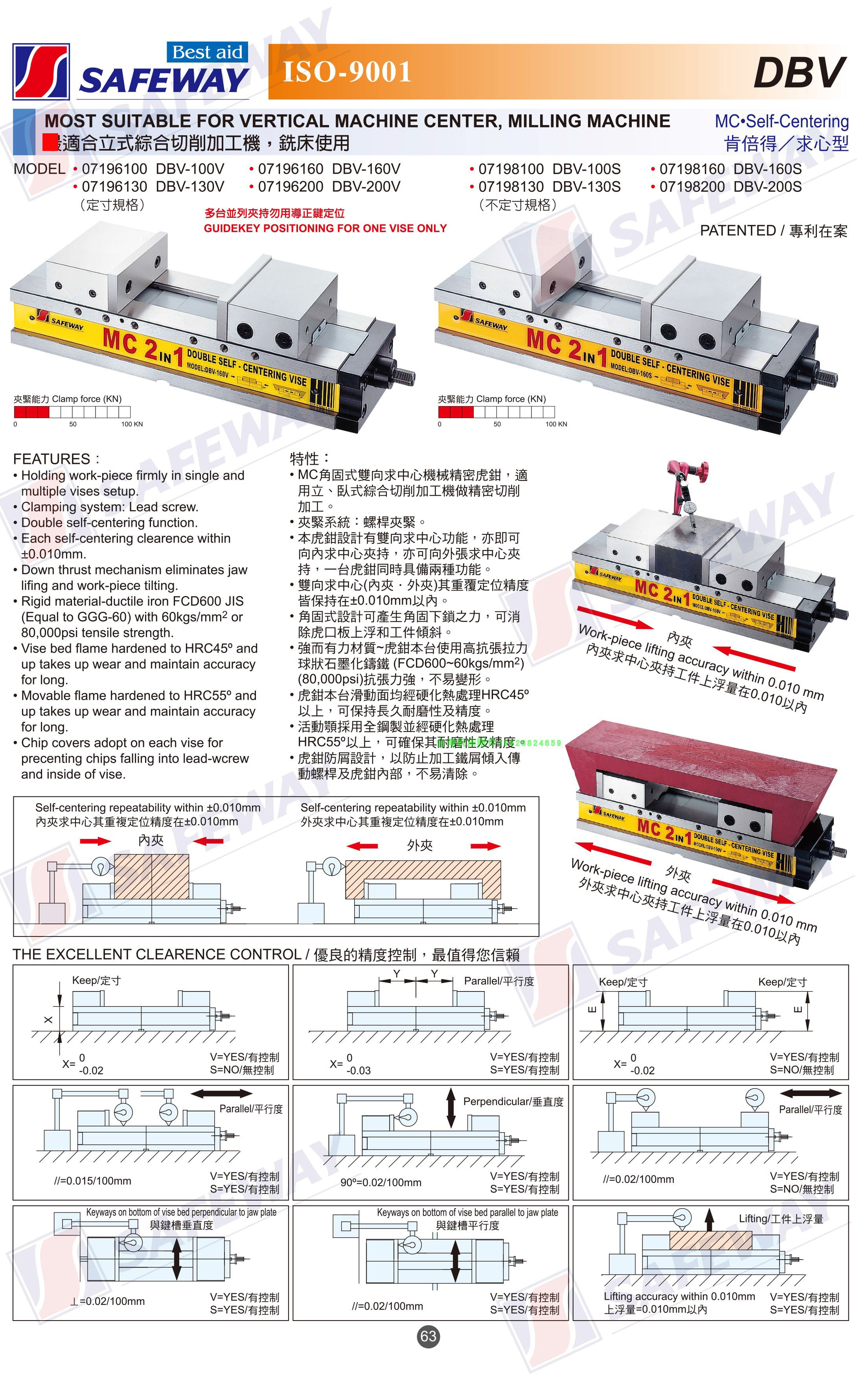 Taiwan MC mechanical tiger clamp precision tiger clamp DBV-100 130 160 200V for center tiger clamp