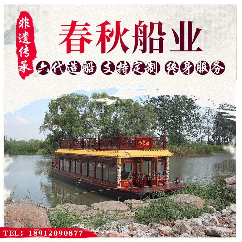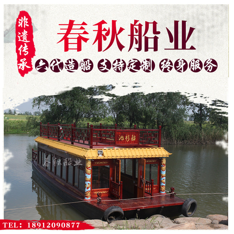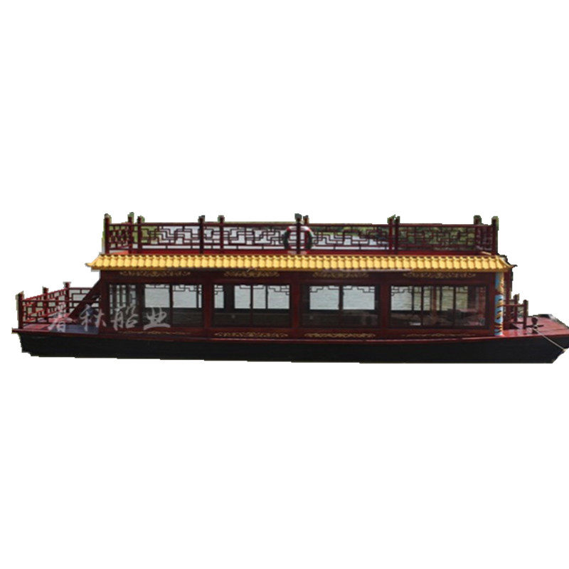 Wooden boat painting Boat Boat Bilayer Large Scenic Area Sightseeing Tour Antique Chinese Style Catering Ship Real Wood Electric Water Boat-Taobao