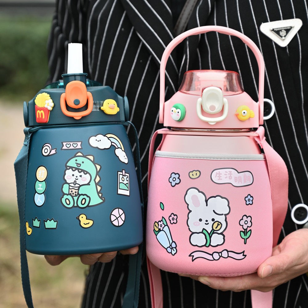 High face value insulated cup female large capacity water cup children student kettle portable cute straw cup mesh red big belly cup