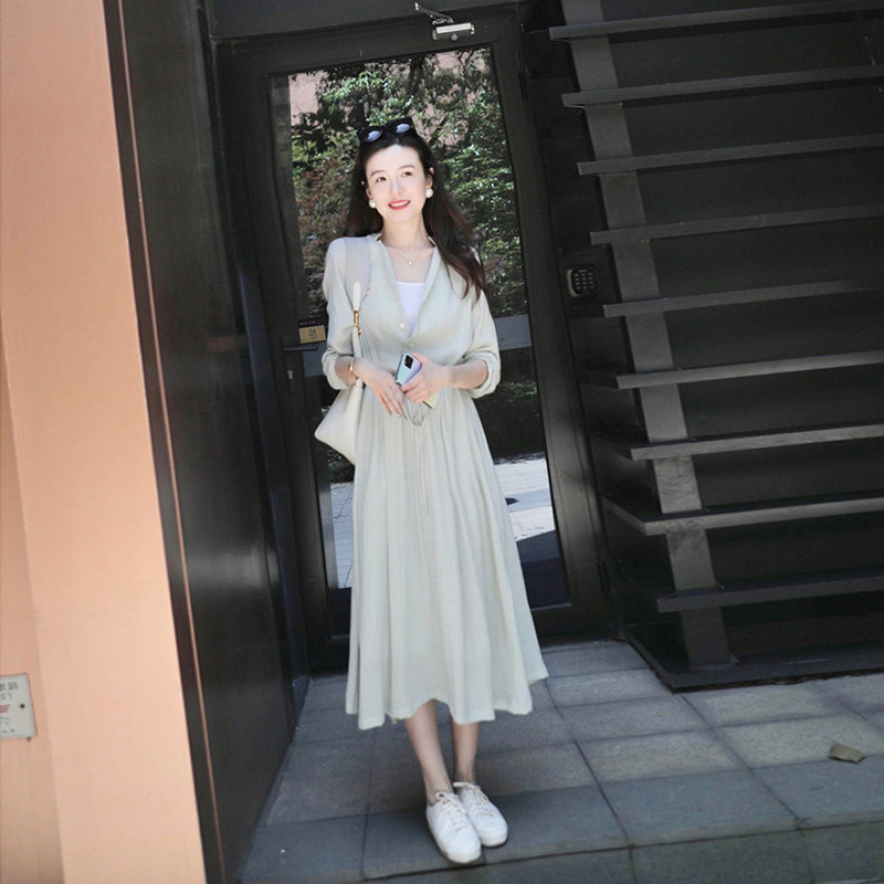 European Station new French style retro gentle wind collection waist temperament Long dress woman ultra-fairy lace shirt with dress spring-Taobao