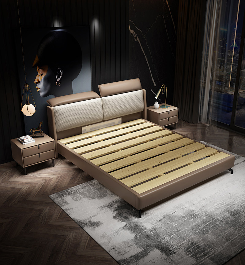Modern simple light luxury 15m leather bed new high-end atmospheric storage soft bag 18m master bedroom double marriage bed - Taobao