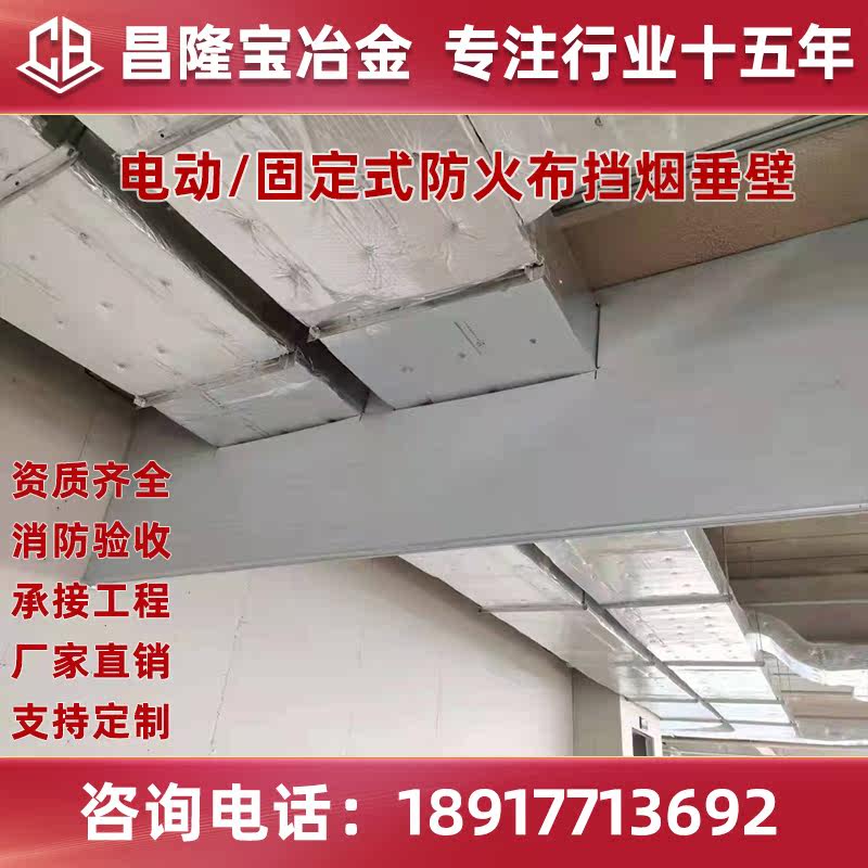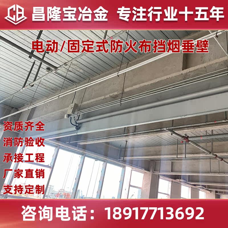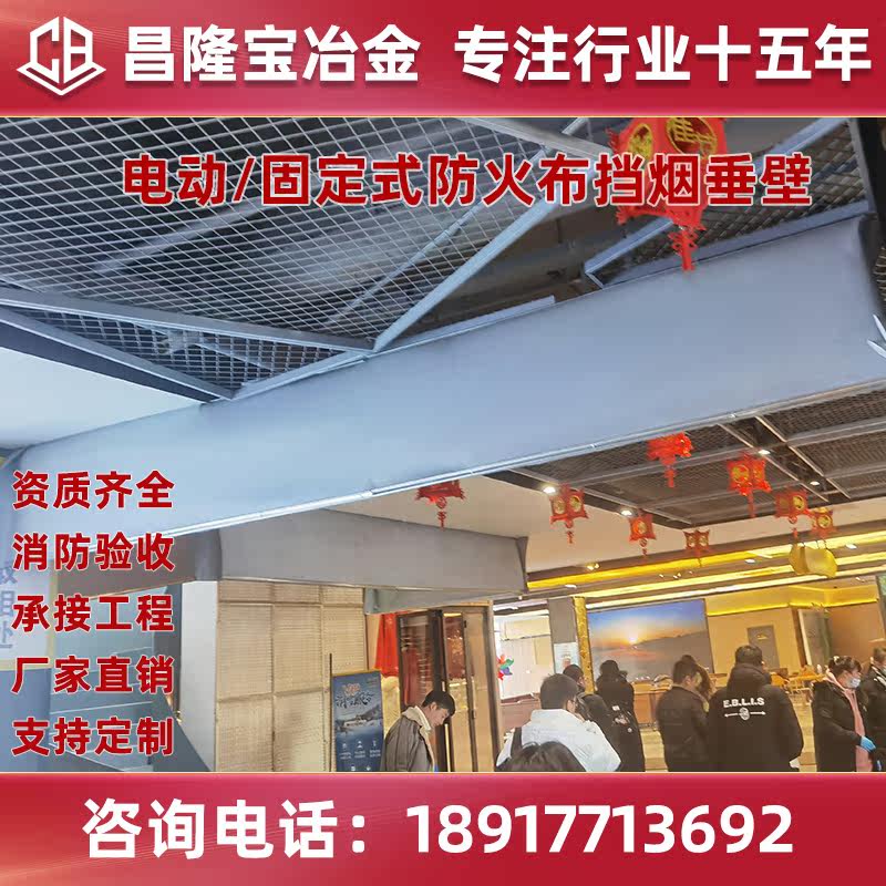 Electric flexible smoke barrier vertical wall fixed fireproof cloth high temperature roller shutter smoke insulation roller curtain glass fiber fire protection