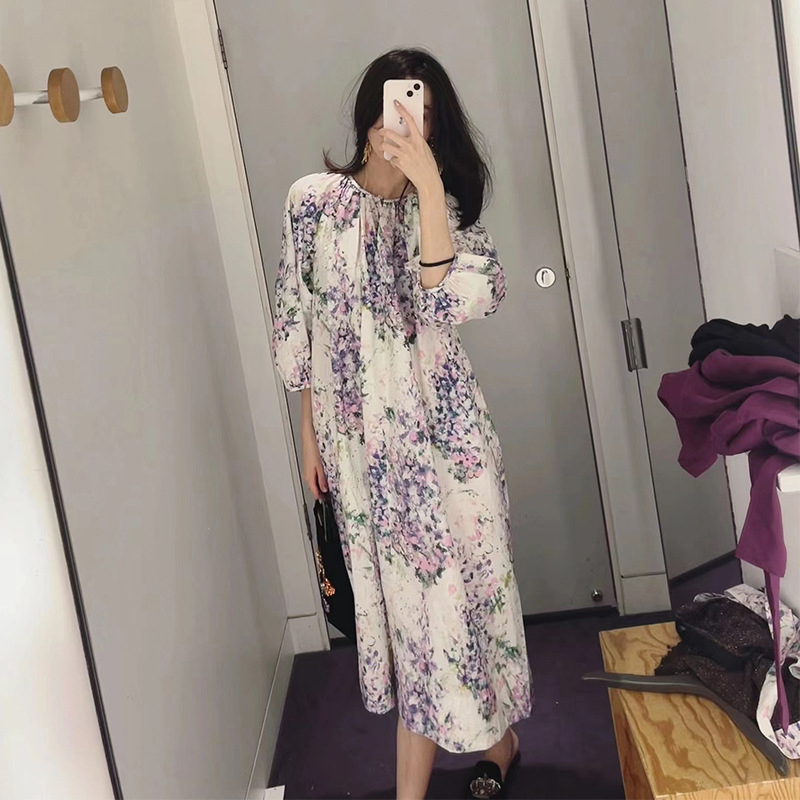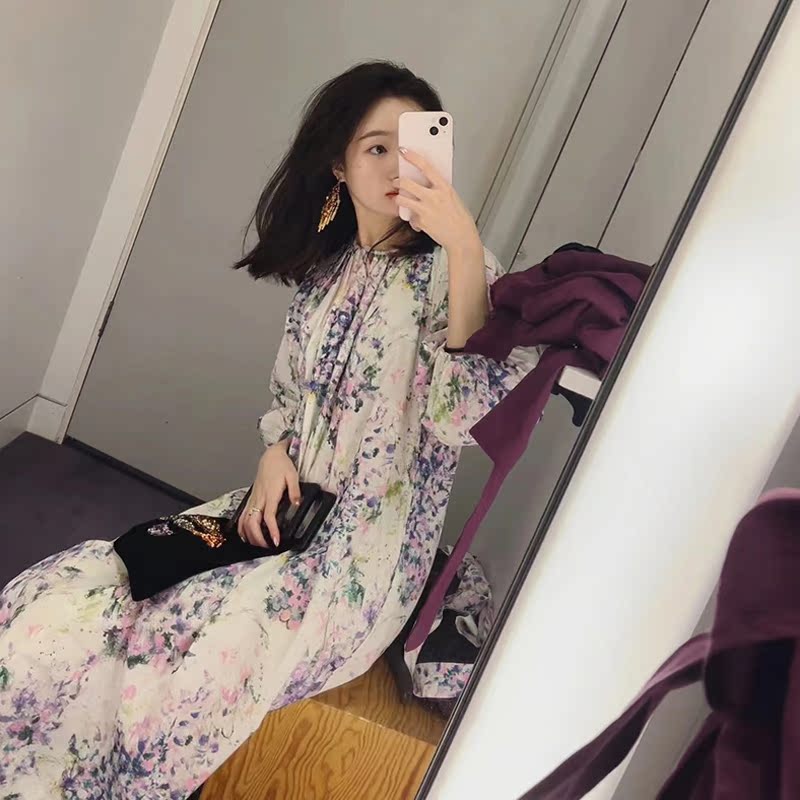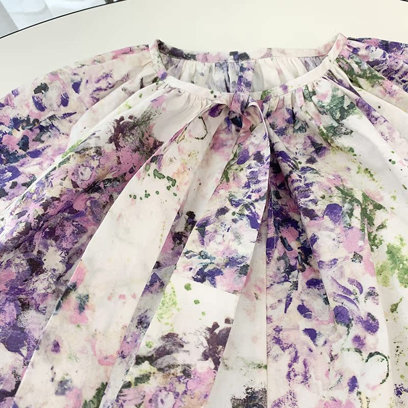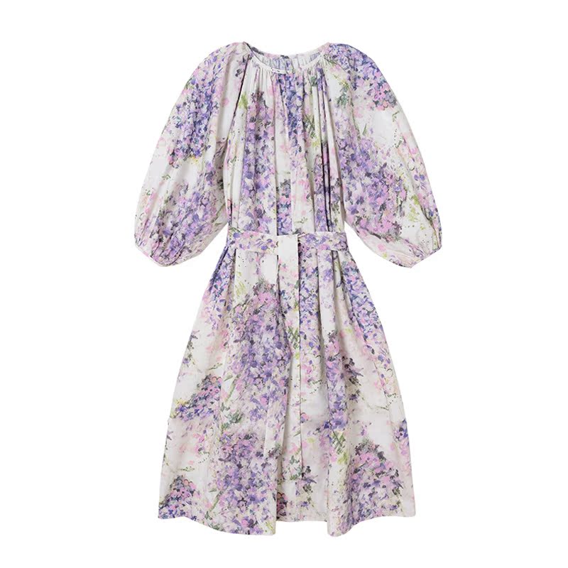 Maje mantas series French light luxury puff sleeve printing casual dress diving pink 2022 summer new