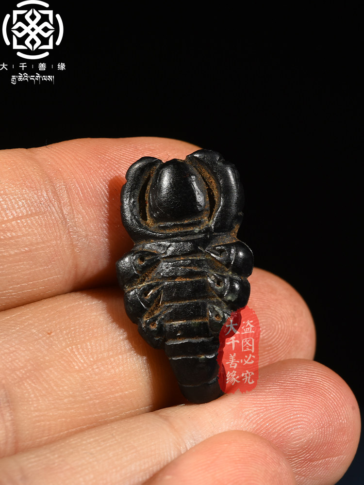 Great Qianzong Tibet Tibetan to pass on the black stone scorpion king small objects small pieces collection of pieces