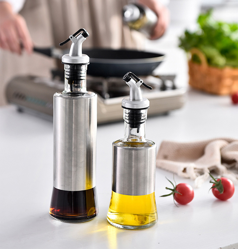 Hebi Glass Anti Oil Spill Bottle Soy Sauce Vinegar Seasoning Bottle Suit Kitchen Home Stainless Steel Oil Jug Vinegar Pot 1036-Taobao