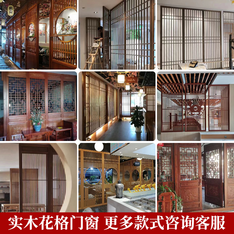 Custom Dongyang Wood Carved Imitation Ancient Doors And Windows Solid Wood Flower Lattice Carved Windows New Chinese Grilles Partition Xuanguan Screen