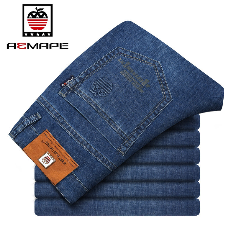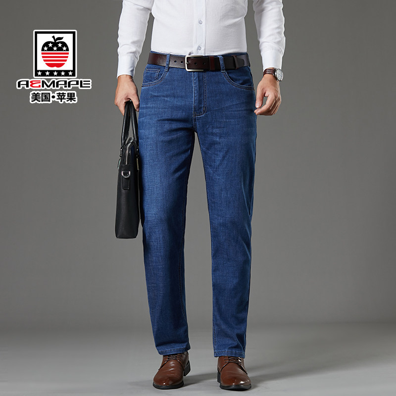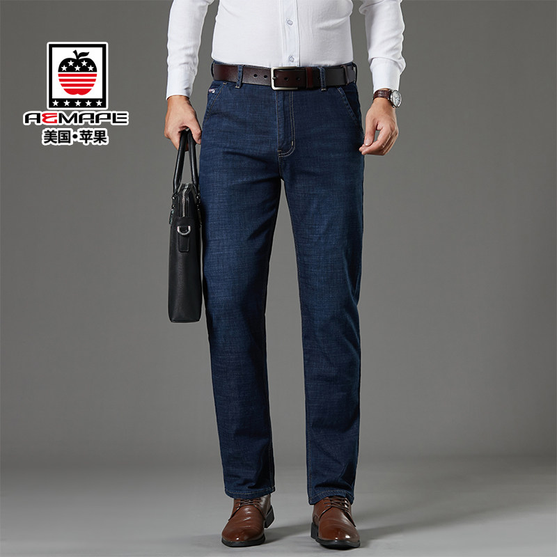 Apple jeans men's autumn and winter thick loose straight high waist middle-aged casual men's long pants AEMAPE