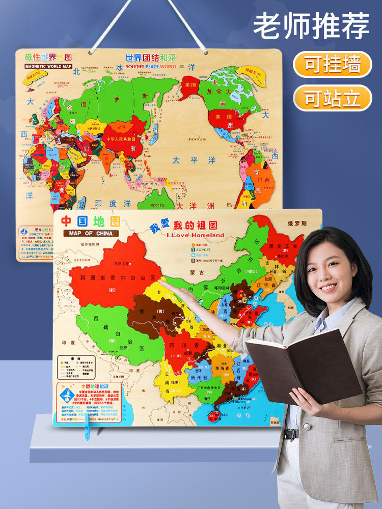 Magnetic Talking Chinese Map Puzzle Magnetic Talking World Map Magnetic Wood Map China Map 400*300*10mm(Teacher recommended) Magnetic