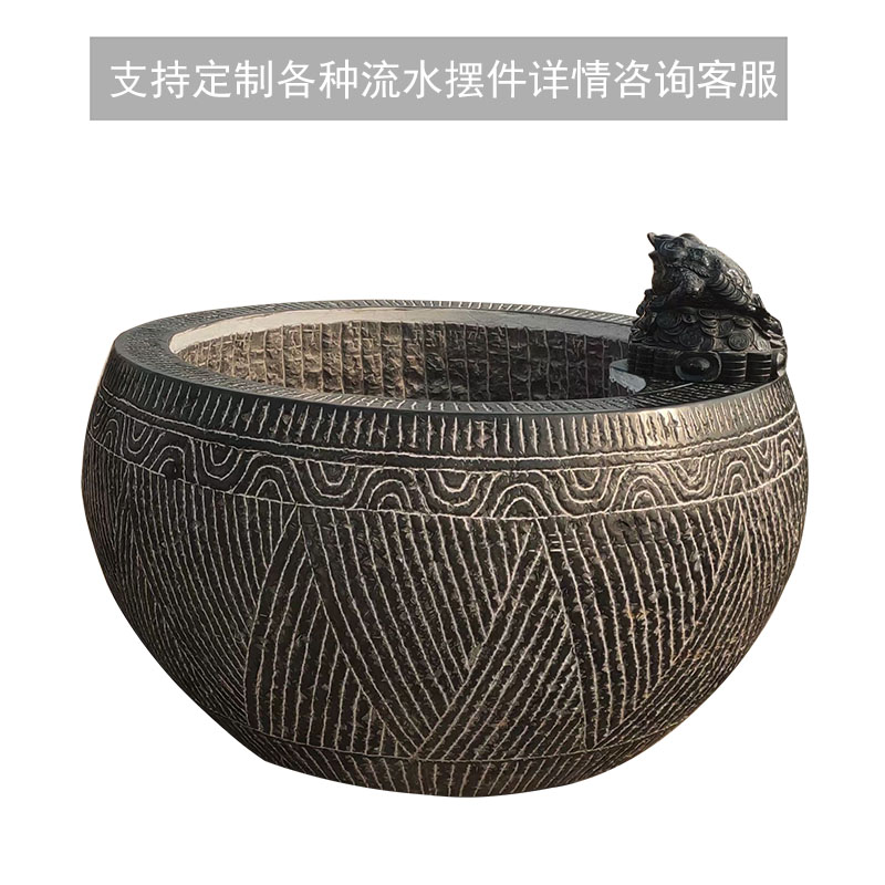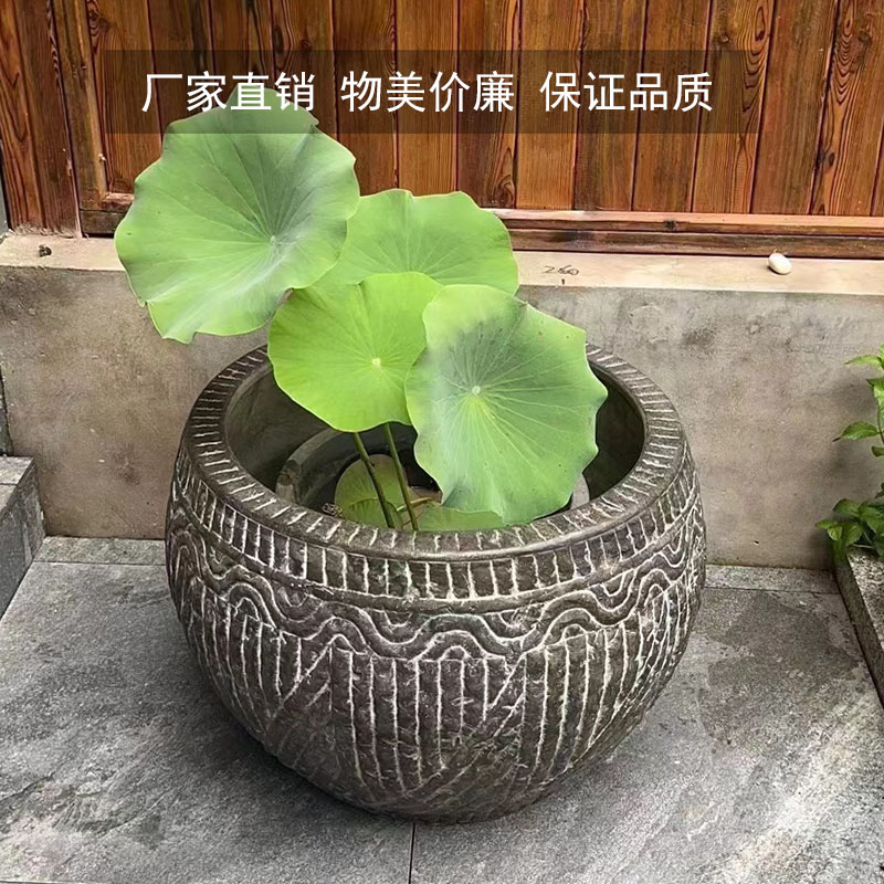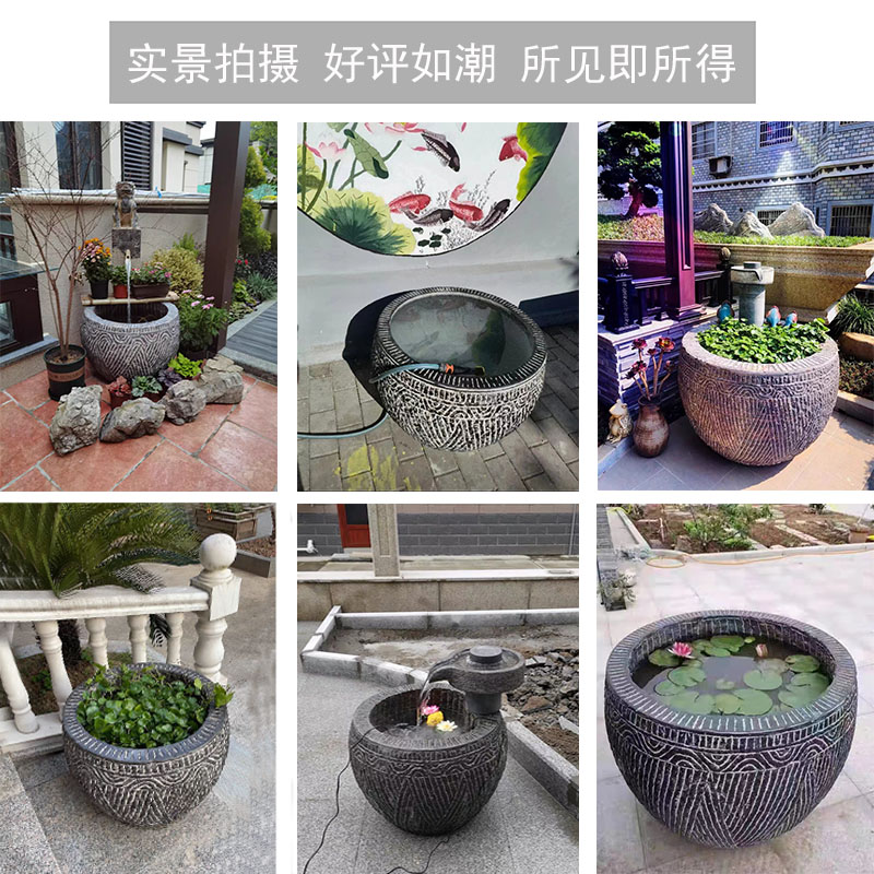 Natural green stone vat yard stone carved water cylinder stone fish tank flower fish stone lotus flower fish round vat outdoor fish stone basin -Taobao