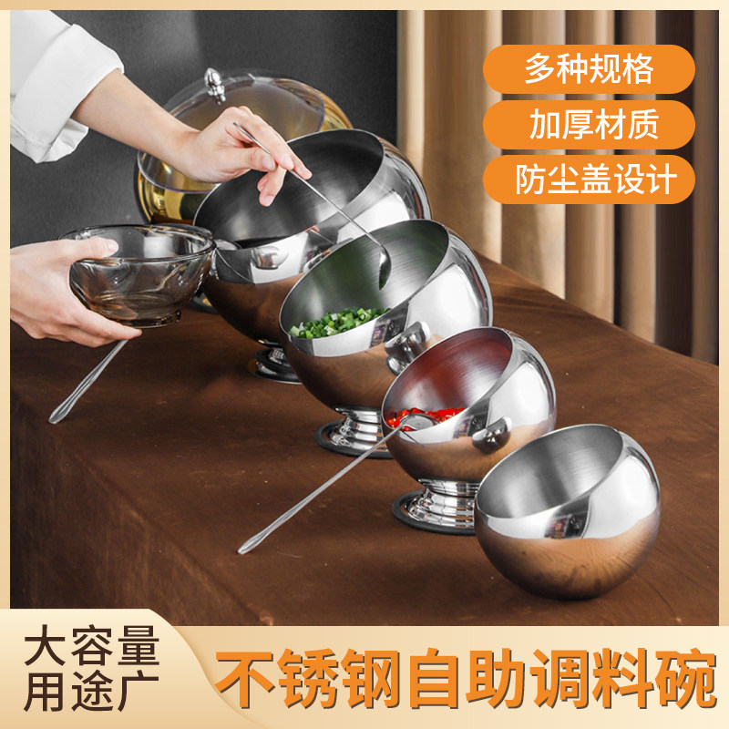 Stainless steel self-service seasoning bowl commercial hot pot restaurant oblique mouth sauce bowl with lid Malatang dining room small dipping bowl