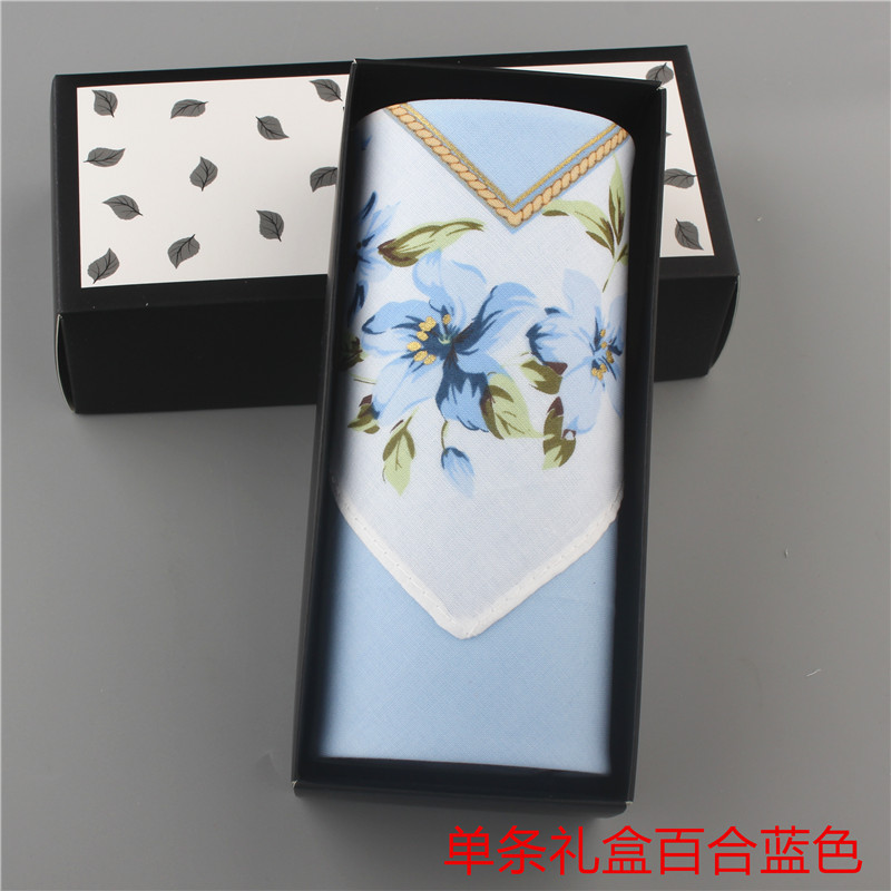 Lady Lily printed handkerchief pure cotton ultra-thin handkerchief female with towel high-grade gift box