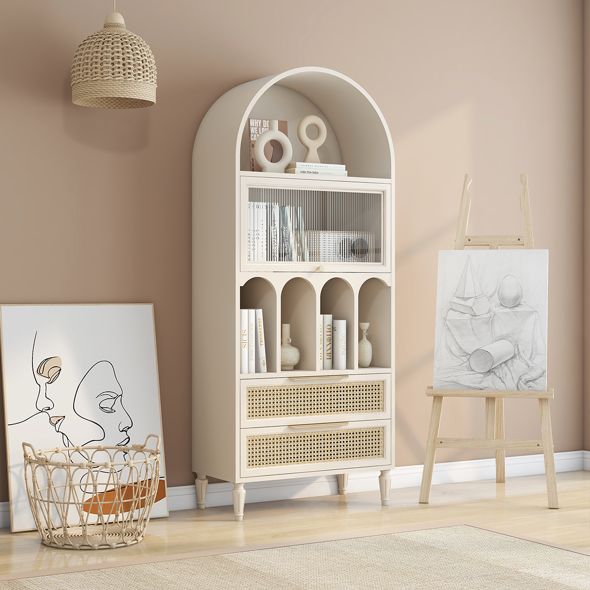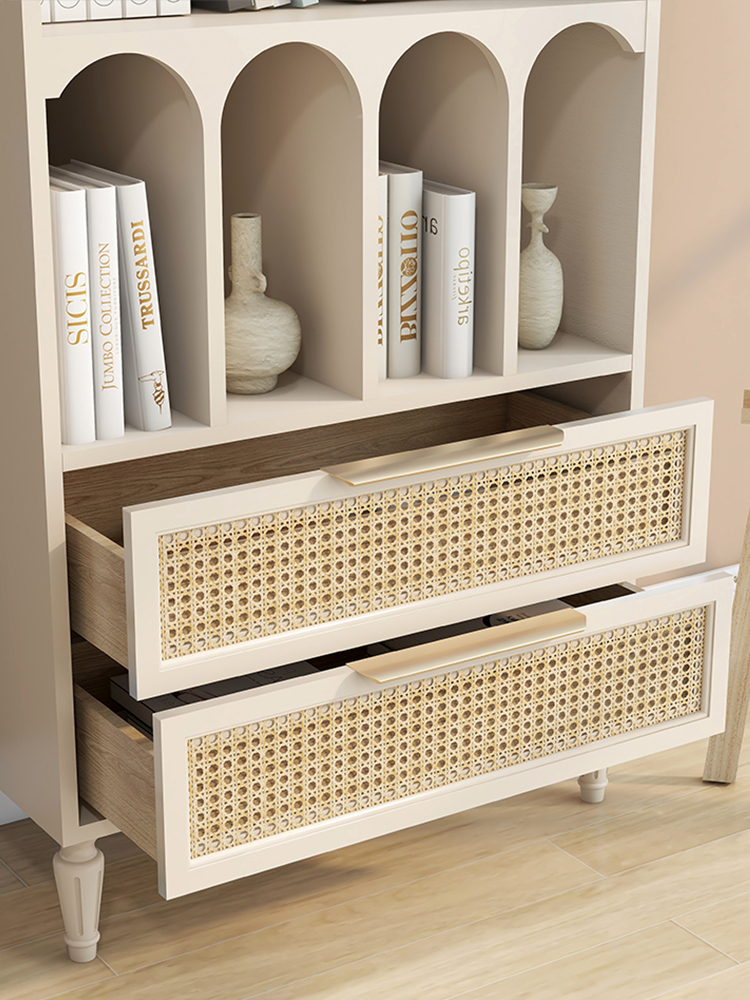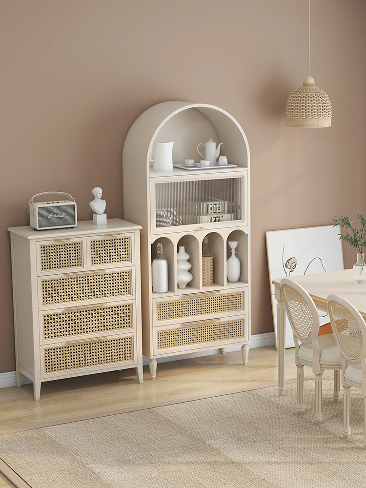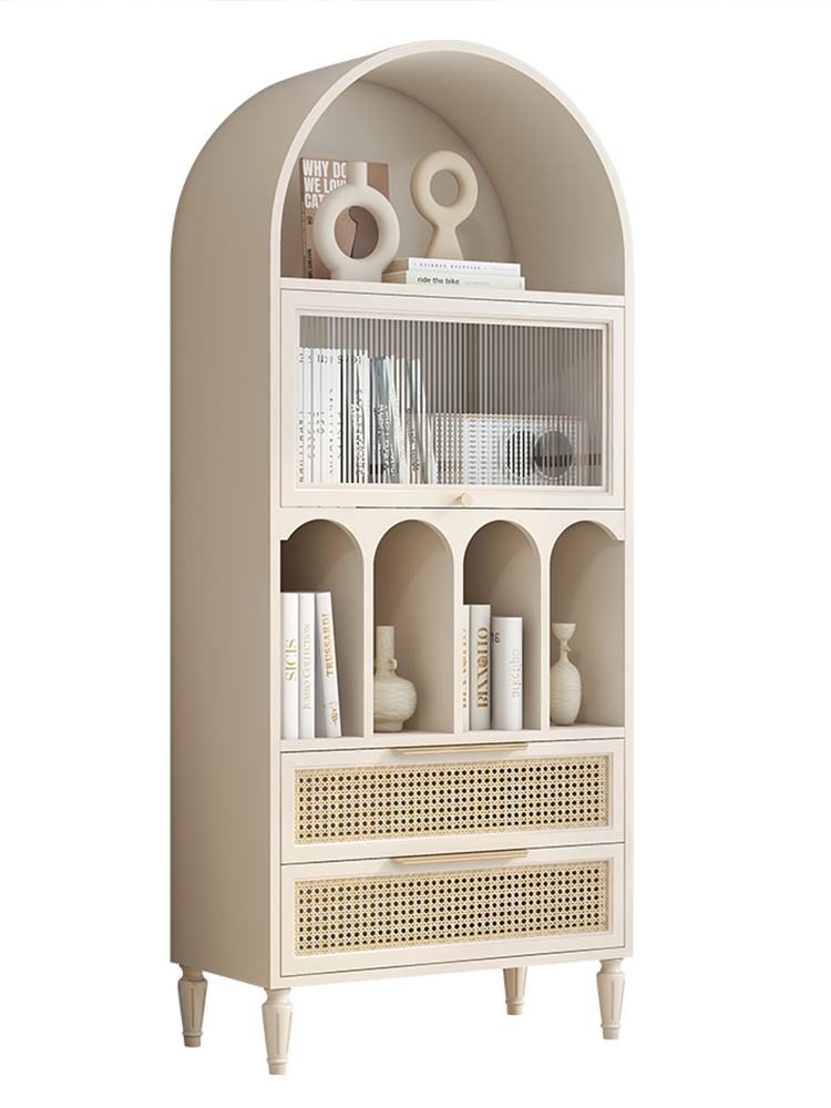 French retro bookcase arched dining cabinet integrated against the wall high cabinet rattan wine cabinet Changhong glass medieval arch